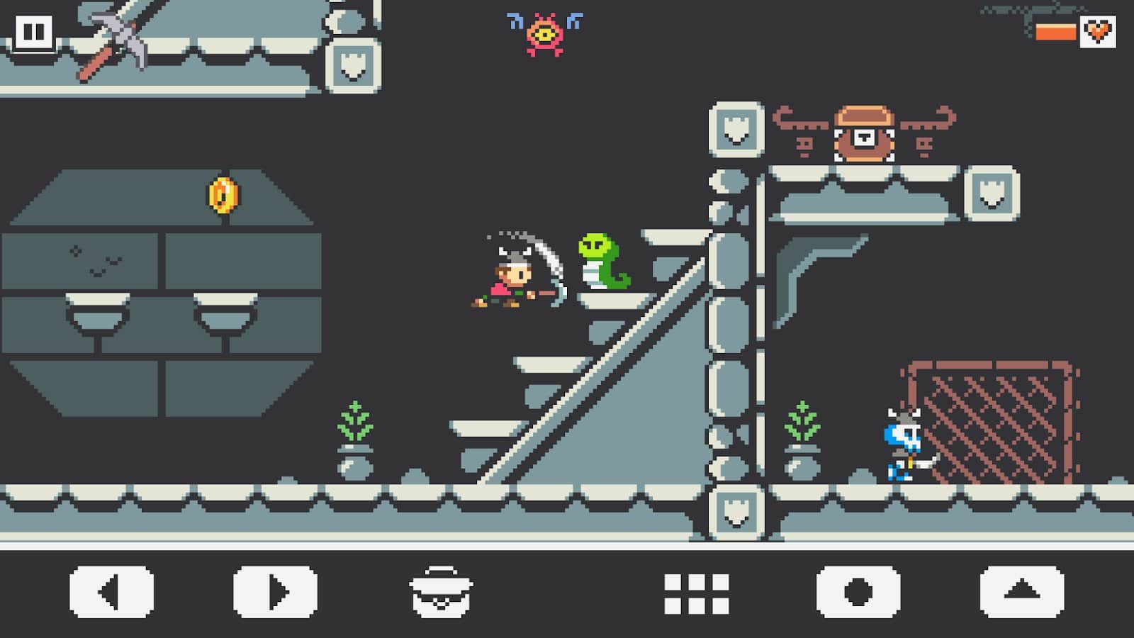 Aventura de Birk – encantadora aventura de píxeles en estilo retro para Android. En este juego ayudarás a Tag a salvar el Reino de las fuerzas oscuras. La trama del juego comienza con que durante la lluvia en el cielo nocturno sobre el Reino Nydahl apareció una fuerza misteriosa. Birk, el valiente y audaz héroe, se precipitó hacia la antigua torre donde vivía Merlin para obtener respuestas a sus preguntas. Birk descubre que el rey está desaparecido y que las sagradas tabletas de piedra han sido robadas, dejando al Reino desprotegido. Embárcate en un peligroso viaje, explora la tierra, interactúa con los lugareños y recoge armas en preparación para la batalla.