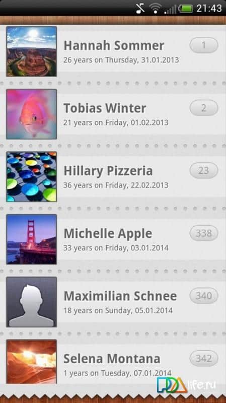 Cumpleaños - ¿A menudo olvida fechas importantes? Esta aplicación hará su vida más fácil, ya no necesitará recordar el cumpleaños de su hijo, o cuándo tuvo su primer beso con su pareja. Sorpréndalos con el hecho de que no ha olvidado, simplemente agregue el nombre del evento y la aplicación le dará una alerta indicando qué día es. No solo indica qué día será, sino que también mantiene el calendario en sí. Al abrir la aplicación, verá inmediatamente qué festividad y cuántos días faltan. Todo esto está convenientemente recopilado y mostrado en una interfaz simple e intuitiva.