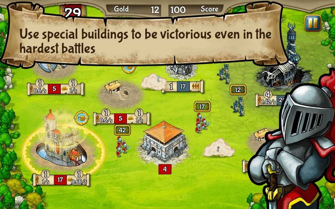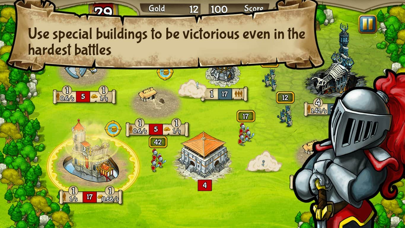 Batalla de Castillos - un juego de estrategia militar, con una gran cantidad de construcciones diversas y unidades militares. Al principio del juego, solo posees un pequeño castillo. Pero con el tiempo, desarrollando su infraestructura y sometiendo los territorios cercanos, tendrás acceso a nuevas mejoras para el castillo y nuevas construcciones. ¡Conviértete en un gran conquistador!