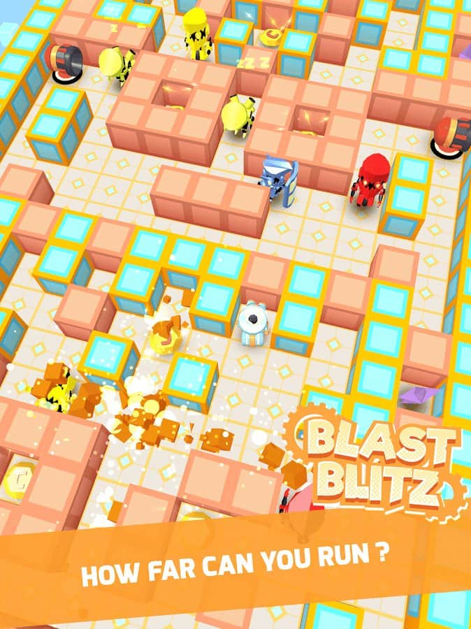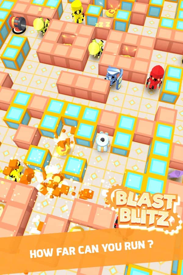Blast Blitz - Este juego combina muchos géneros diferentes, y este rompecabezas donde tienes que tomar decisiones rápida y precisamente, y un corredor en el que tienes que escapar de un suelo en colapso y un juego de arcade donde tienes que moverte no solo rápidamente, sino también sabiamente. Pero en general, este juego recuerda mucho al buen viejo Bomberman. Su esencia es bastante simple, hay un laberinto donde hay muchas paredes que se rompen y no se rompen y otros robots que lanzan bombas, necesitas atravesar todo el laberinto y no morir.