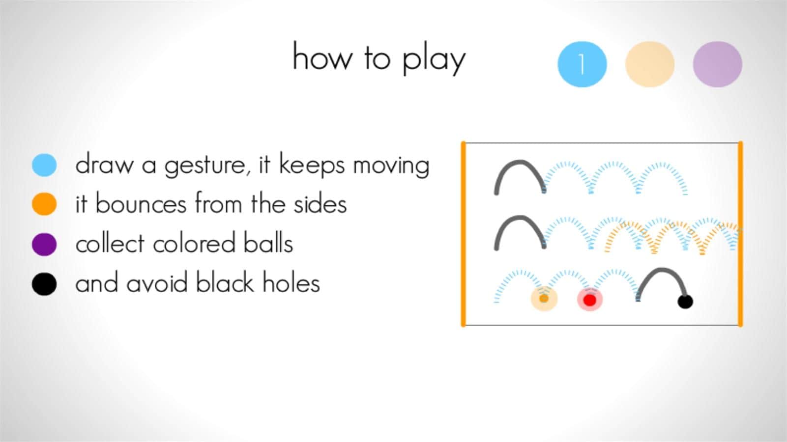 Blek – un juego divertido y adictivo para Windows Phone donde debes desarrollar tu razonamiento espacial y lógica. En este juego verás una pantalla con círculos, tu tarea será dibujar una línea que destruya todos los círculos. La línea puede golpear el borde de la pantalla y otros círculos y cambiar su trayectoria, ten esto en cuenta al completar los niveles. Cada nivel puede tener varias opciones para su paso, así que usa tu imaginación y dibuja líneas, comenzándolas en vuelo. Evita los agujeros negros y otros obstáculos.