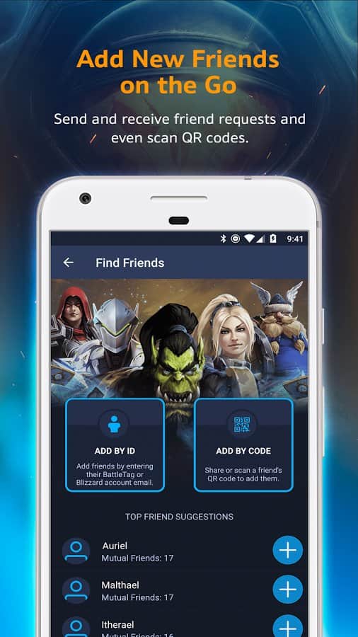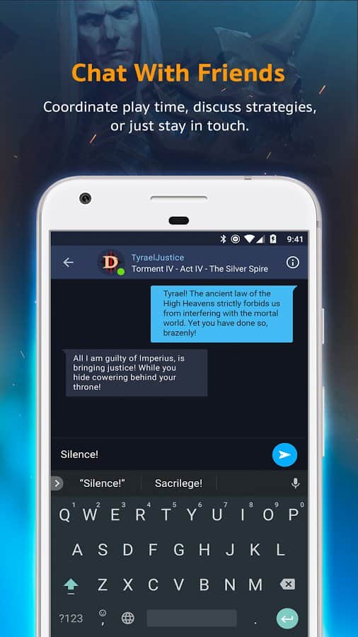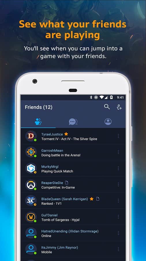 Blizzard Battle.net - una aplicación móvil simple con la que podrás seguir a tus amigos y qué juegos están jugando. Para jugar, por supuesto, no puedes, sin embargo, en cualquier lugar y en cualquier momento puedes chatear con tus amigos o responder a mensajes en el momento en que estás jugando. De hecho, la aplicación es simple y realiza todas las mismas funciones que su contraparte en el PC.