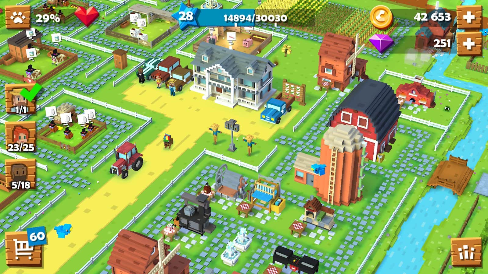 Blocky Farm es un fascinante arcade en Android donde operarás una granja. Sumérgete en el mundo de una pequeña granja donde cuidarás de mascotas y cultivarás cosechas. Conduce el tractor y siembra diferentes cultivos, y sus animales prueban diferentes disfraces y sombreros. Cultiva cosechas, transporta mercancías a la ciudad y haz tantos amigos como sea posible. Cuida con amor de las adorables mascotas y disfruta del único sistema de apego e interactúa con los animales. El juego te deleitará con gráficos cúbicos coloridos y varios modos de juego.