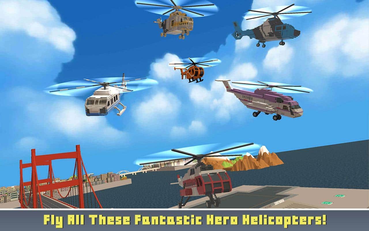 Blocky City Helicopter Heroes – toma el control de tu helicóptero y completa varias misiones del juego. En este juego volarás sobre Nueva Orleans para rescatar personas y extinguir incendios. Eleva al cielo en tu helicóptero y patrulla las calles dentro y alrededor de la ciudad, rescatando a personas caídas al agua, con los coches de los infractores. Realiza tareas del juego y ayuda a los ciudadanos a liquidar las consecuencias del devastador tsunami. Los jugadores del juego apreciarán los gráficos en bloques, la variedad de helicópteros y la jugabilidad adictiva. Juega a este juego y conviértete en un piloto profesional ACE.