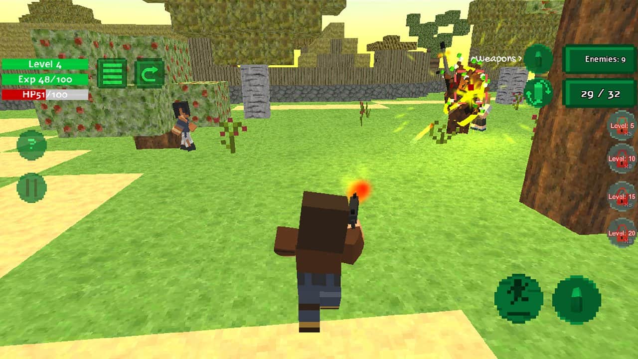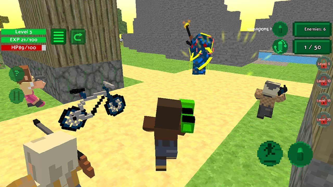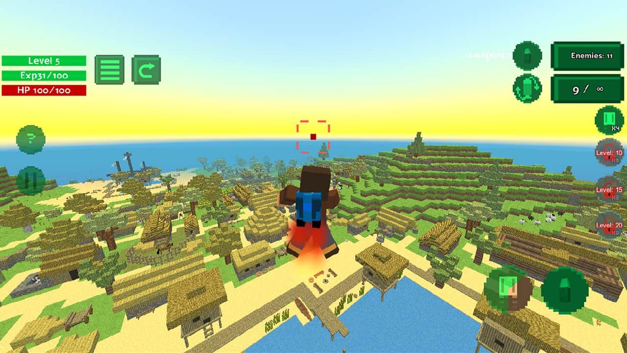 Blocky Island Rampage – descubre la enorme isla que quieren capturar monstruos y robots de combate. Toma las armas y explora la isla, cazando a tus enemigos y destruyéndolos. Pasa por densos bosques y explora los vastos valles, y navega, destruyendo enemigos con agua. Únete a las fuerzas de los aldeanos y juntos luchan contra todos los enemigos. En tu arsenal de armas siempre encontrarás algo interesante, así que revisa las armas y los lanzacohetes. Muévete a través de varias ubicaciones y busca refugio, aumentando así tus posibilidades de ganar.