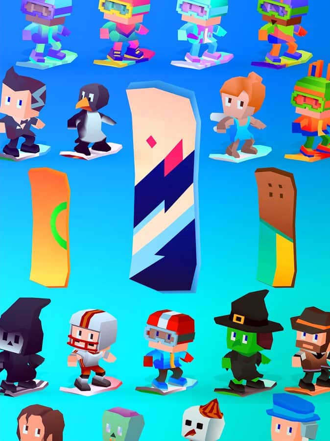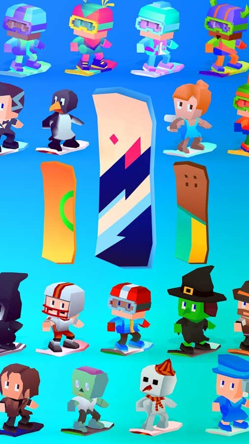 Blocky Snowboarding es un gran juego de los desarrolladores Full Fat. Estás invitado a participar en deportes de invierno, a saber, snowboard. En el juego necesitarás sortear los diferentes obstáculos que se te presentarán en el camino con un simple toque en la pantalla de tu dispositivo. Una vez que pases la parte principal de la pista, tendrás que hacer un truco importante y difícil, ¡tan alto como sea posible y mejor saltar del trampolín! Depende de tu número de puntos.