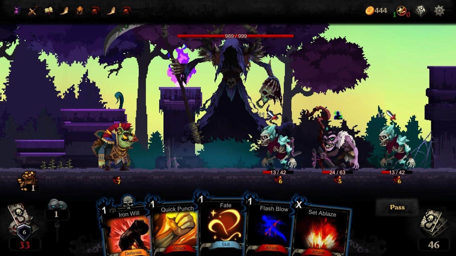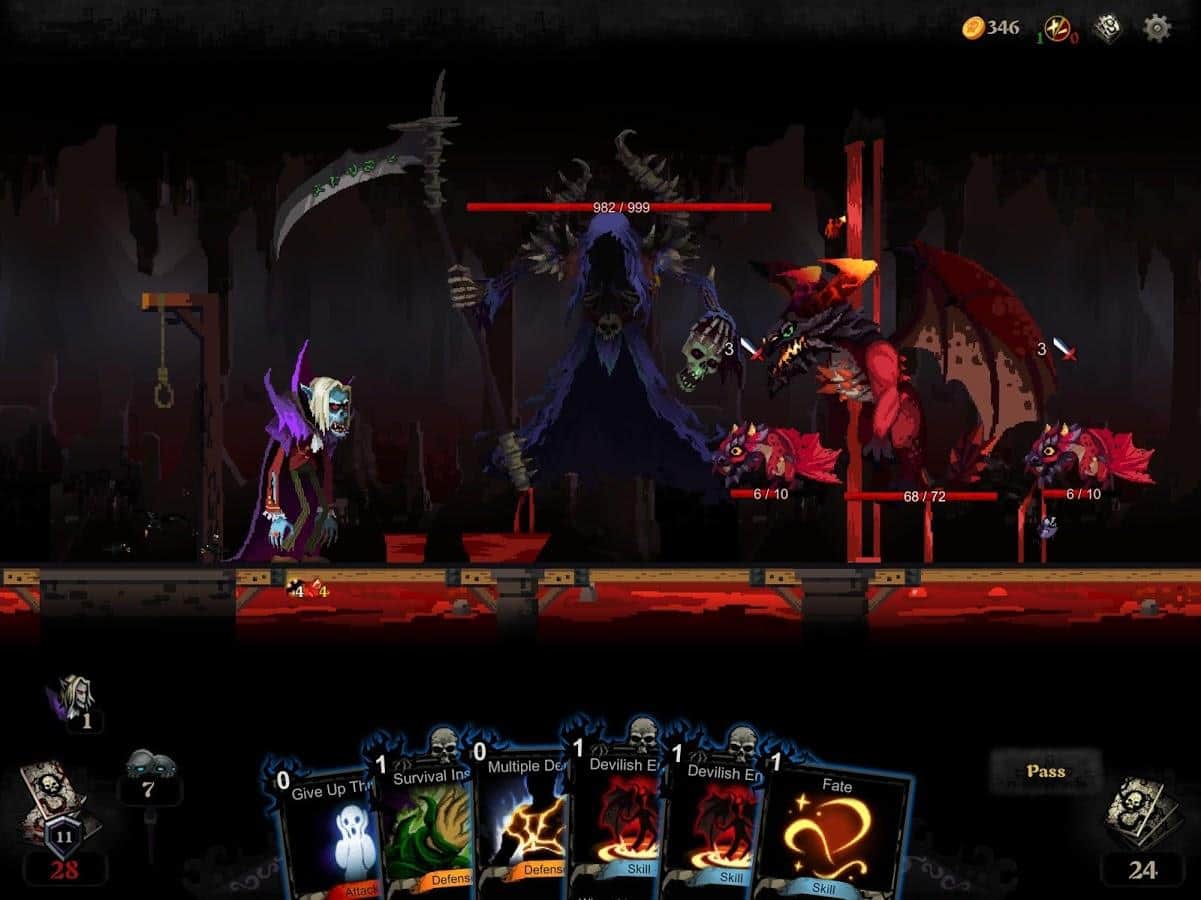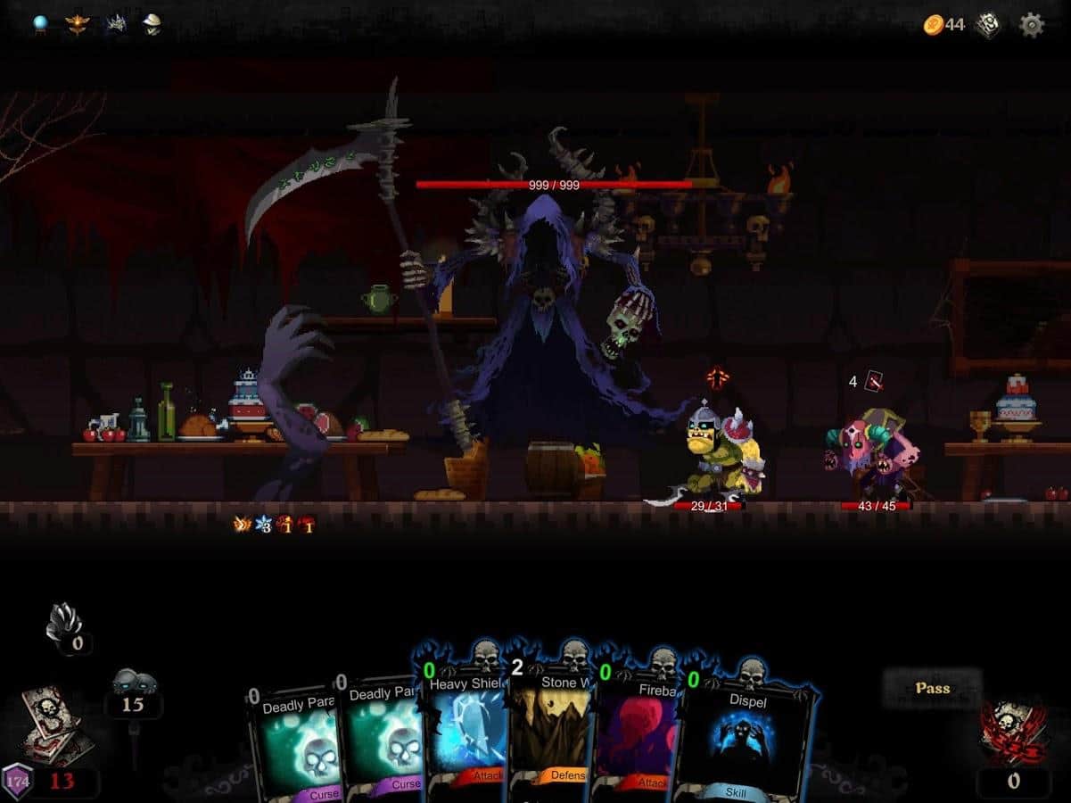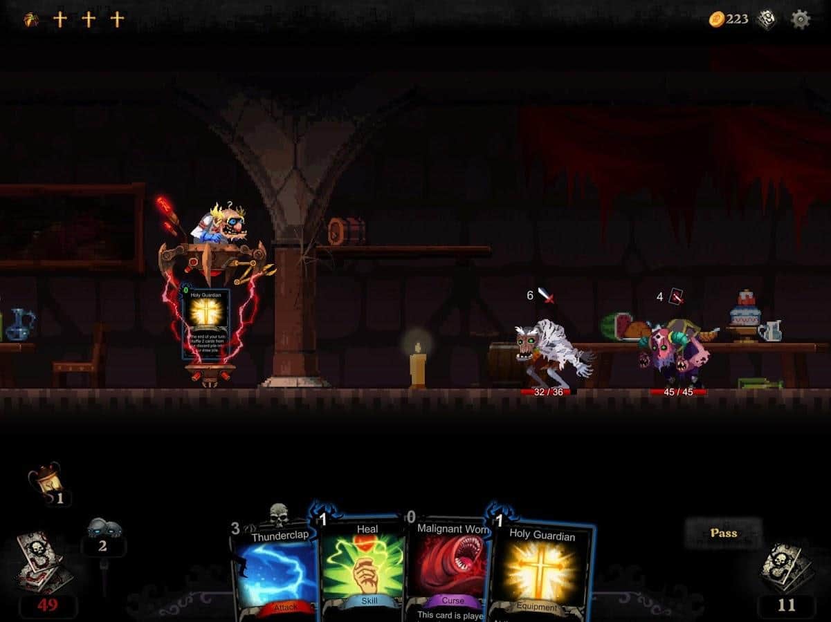 Blood Card – el juego de cartas que combina elementos de roguelike y colocotroni. En este juego, tu tarea principal será coleccionar un mazo único de cartas y aplicar sus propiedades contra numerosos enemigos que se interpongan en tu camino. Embárcate en un fascinante viaje a través de un mundo peligroso y desarrolla tus propias tácticas de juego. Puedes luchar contra enemigos infinitos o lanzar todas sus fuerzas para derrotar a la Muerte que te persigue por todas partes y que quiere llevarse tu alma. Este juego no te dejará aburrido porque contiene 240 cartas, 40 eventos, 10 jefes y 60 tipos diferentes de monstruos. Prueba todos los modos de juego y alcanza excelentes resultados.