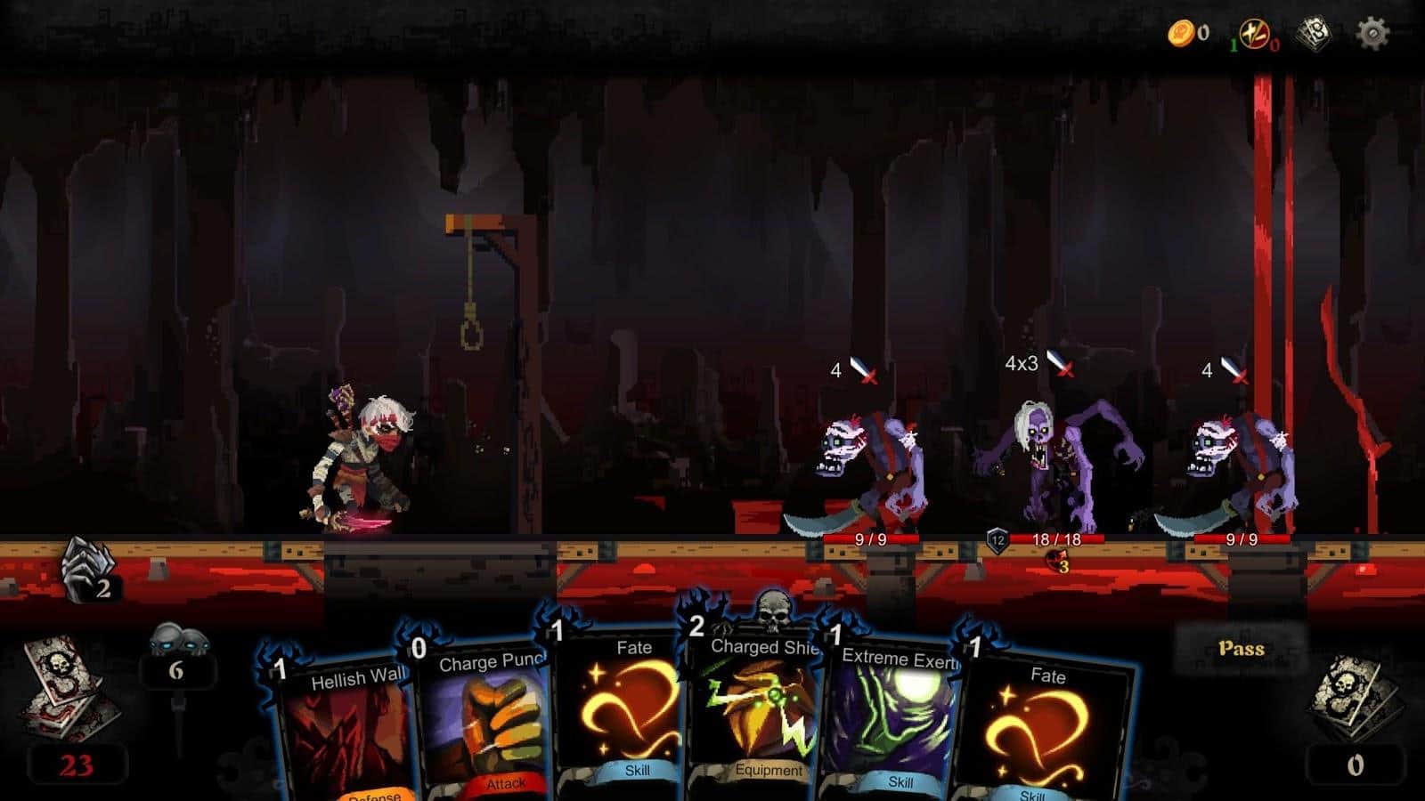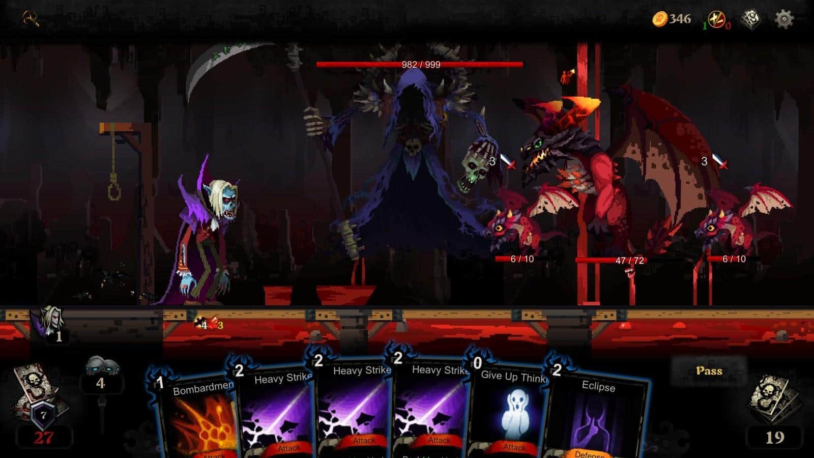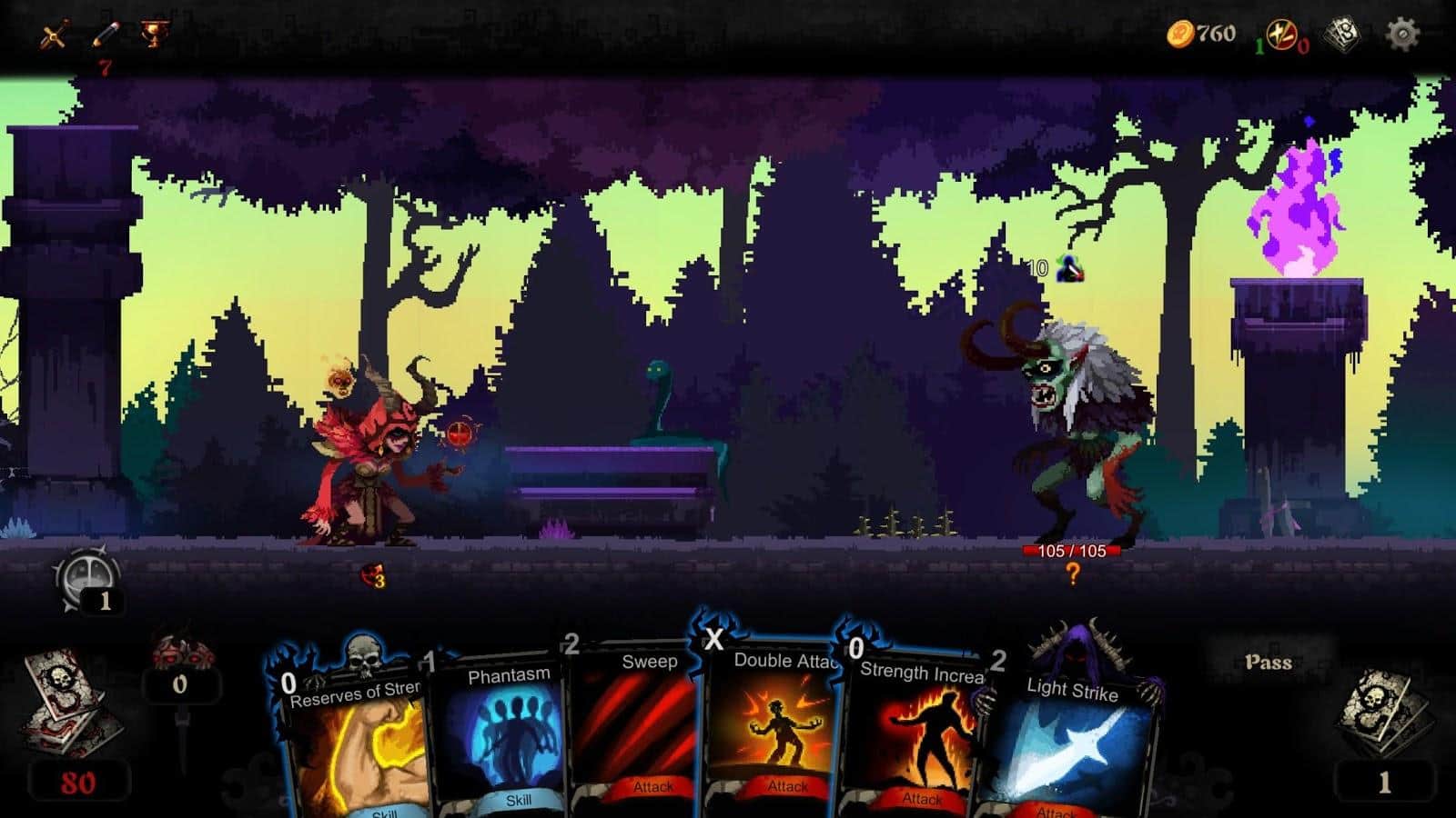 Blood Card – el juego de cartas que combina elementos de roguelike y colocotroni. En este juego, tu tarea principal será coleccionar un mazo único de cartas y aplicar sus propiedades contra numerosos enemigos que se interpongan en tu camino. Embárcate en un fascinante viaje a través de un mundo peligroso y desarrolla tus propias tácticas de juego. Puedes luchar contra enemigos infinitos o lanzar todas sus fuerzas para derrotar a la Muerte que te persigue por todas partes y que quiere llevarse tu alma. Este juego no te dejará aburrido porque contiene 240 cartas, 40 eventos, 10 jefes y 60 tipos diferentes de monstruos. Prueba todos los modos de juego y alcanza excelentes resultados.