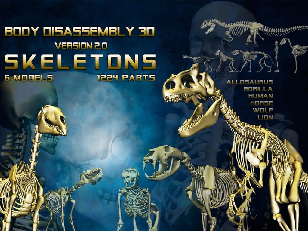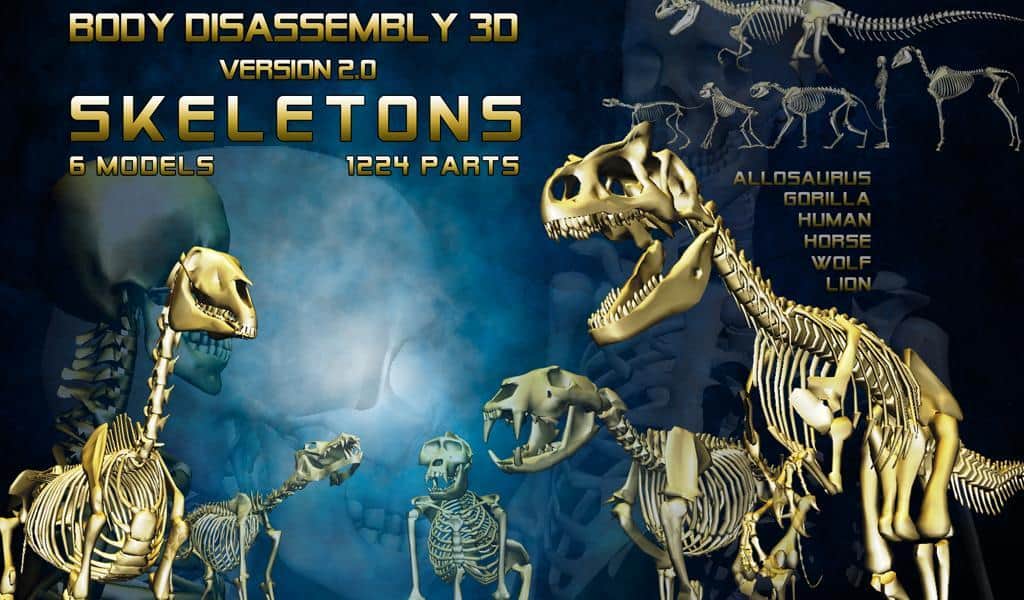 Después del resonante éxito de la versión para PC del simulador de armas llamado World of Guns: Estudio de Desmontaje de Armas, el desarrollador Noble Empire decidió complacer a los propietarios de smartphones y tabletas con una versión móvil, que recibió no menos reconocimiento que su hermano mayor. Más tarde, la serie tuvo una serie completa de secuelas, una de las más interesantes fue Body Disassembly 3D. Body Disassembly 3D es un juego de simulación con elementos de rompecabezas donde tendrás que poner a prueba tu conocimiento sobre la estructura del esqueleto, no solo humano, sino también de una serie de otras criaturas, incluyendo aquellas que no han vivido en nuestro planeta. Todo el juego te ofrecerá 6 modelos compuestos de más de 1000 piezas, y el número de modos que te permitirá considerar el modelo desde los mejores ángulos.