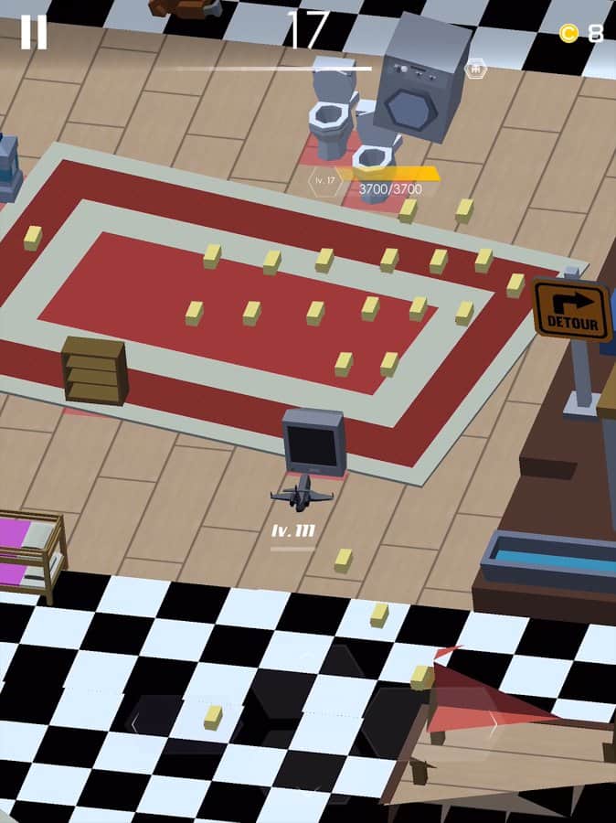 El desarrollador del estudio 111% es conocido desde hace mucho tiempo como el creador de proyectos extremadamente simples, pero emocionantes, que son capaces de atraer casi a cualquier jugador. Por supuesto, la mayoría de los juegos de 111% están lejos de ser los principales representantes de la industria del juego, pero tienen un gran ejército de fanáticos. Así que el nuevo juego de arcade de aviones llamado Boing111 está hecho en las mejores tradiciones del desarrollador, con una mecánica de juego simple, gráficos cúbicos elegantes, un manejo fácil, un sistema de desarrollo y una jugabilidad emocionante. Tu tarea es controlar un enorme avión de pasajeros que, aunque no está bien armado, intenta recorrer la máxima distancia posible, mientras disparas a hordas de enemigos y, por supuesto, a enormes jefes.