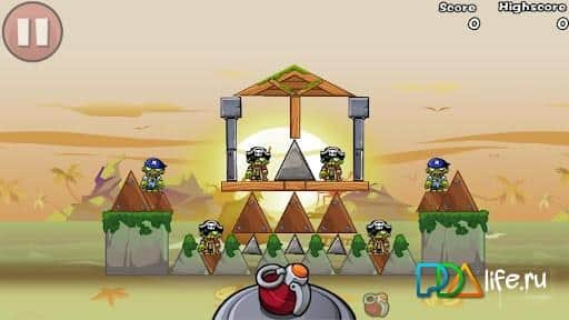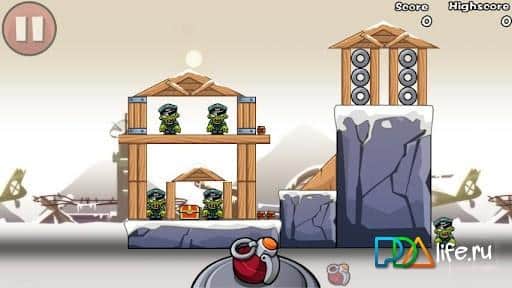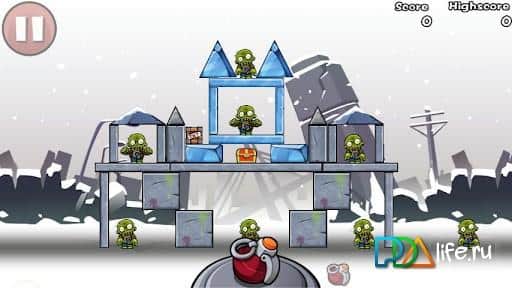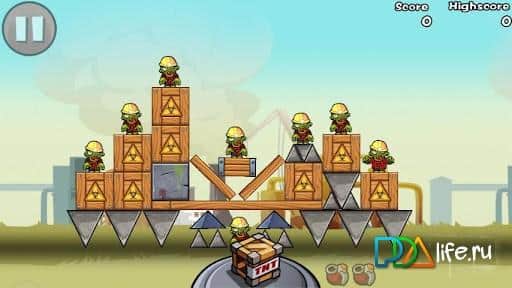 ¡Bombardea a los Zombis! - el juego de arcade se asemeja al famoso juego Angry Birds, pero no son pájaros, y los conocidos pequeños hombres verdes sin cerebro - ¡zombiki! ¡El objetivo es simple: usar un número limitado de cargas explosivas para destruir a todos los zombis, golpeándolos directamente o a través de la destrucción de los edificios en los que se esconden!