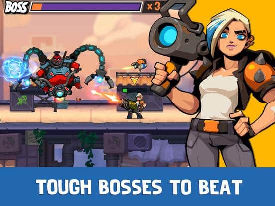 Bombastic Brothers – Run & Gun, un juego de plataformas 2D para iOS donde salvarás al mundo de invasores alienígenas. En este juego desempeñarás el papel de Jeff, un soldado de propósito especial cuya misión es proteger tu planeta de los insectos alienígenas. Recoge armas poderosas y destructivas y viaja a diferentes lugares destruyendo todo a su paso. Destruye a todos los enemigos solo o solicita la ayuda de los amigos del Dr. Zane, un brillante científico que inventa gadgets útiles, una mecánica rubia explosiva que lucha contra los drones, una joven adolescente de jade y un neo-ninja con respuesta relámpago. Reúne un equipo de héroes y derrota a tus oponentes.