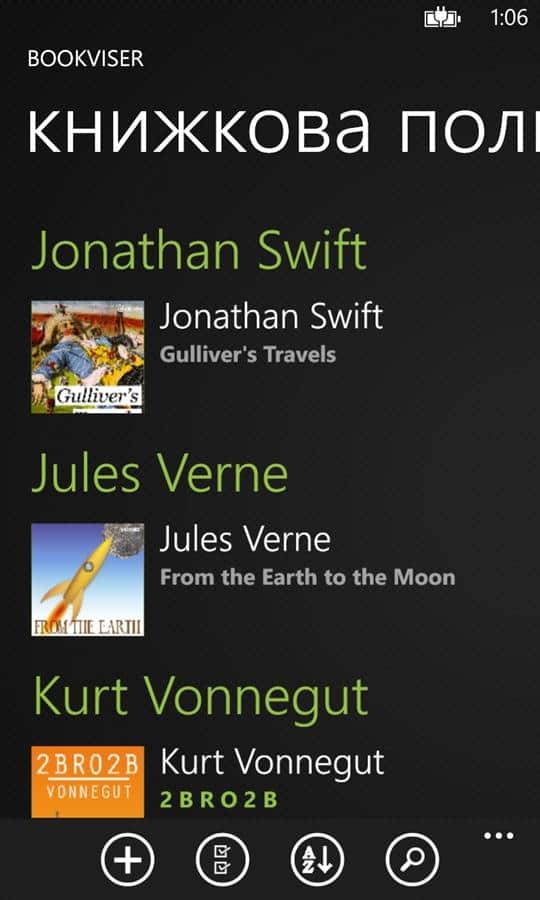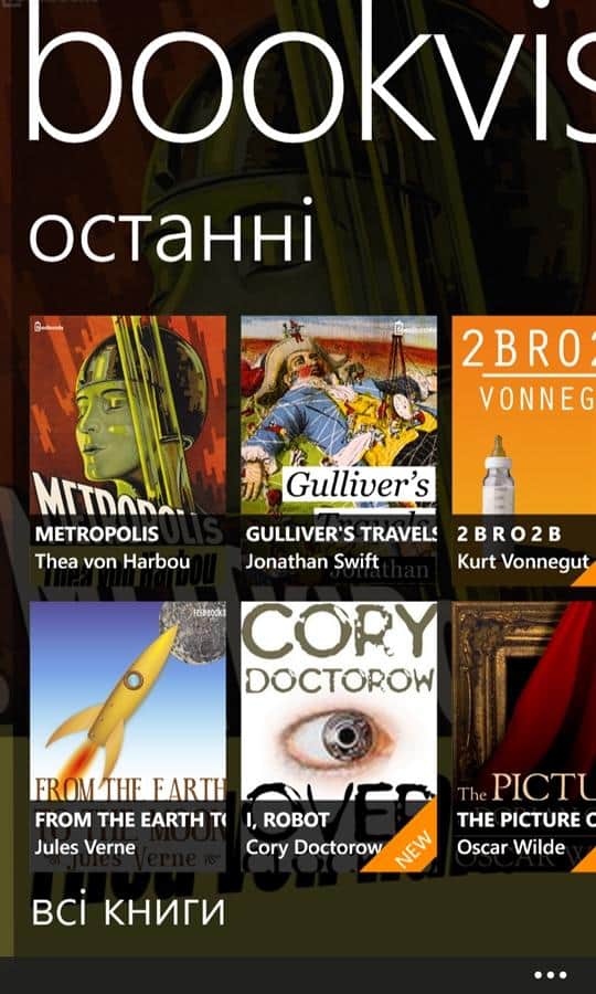 Aplicación Bookviser para Windows Phone, con la cual podrás leer libros. La aplicación es adecuada para los amantes de la lectura, ahora no tienes que llevar libros contigo, los tienes en el teléfono. La aplicación tiene tres tipos de entrega de libros a tu teléfono: con la biblioteca en línea, subir tus propios libros y descargar desde cualquier sitio utilizando el navegador web integrado.