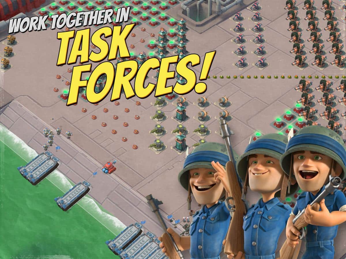 Juego de estrategia Boom Beach para IOS donde tienes que tomar el mando de una base militar y luchar contra un oponente fuerte. En este juego, tu tarea principal será aterrizar en una isla tropical lejana y crear una base militar allí. Únete a una feroz batalla con el grupo local "Guardia Negra" que está atacando el territorio de otros y robando a los locales. Defiende tu base del asalto del enemigo, fortaleciendo sus estructuras de protección especiales, así como atacar las bases de otros jugadores. Explora todos los alrededores de una isla tropical y participa en una batalla épica con un número infinito de enemigos. Descubre el poder mágico de estatuas antiguas y cristales misteriosos.