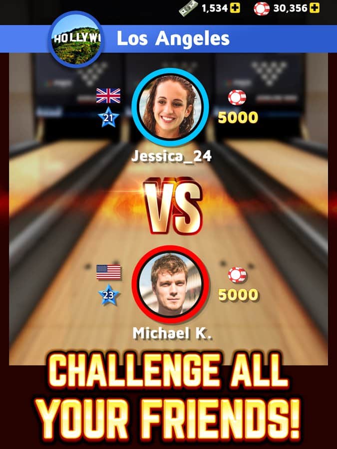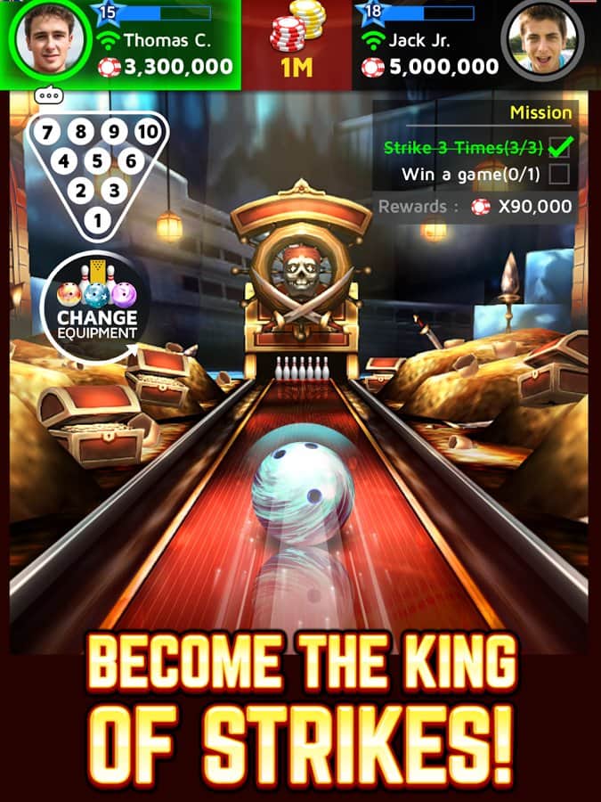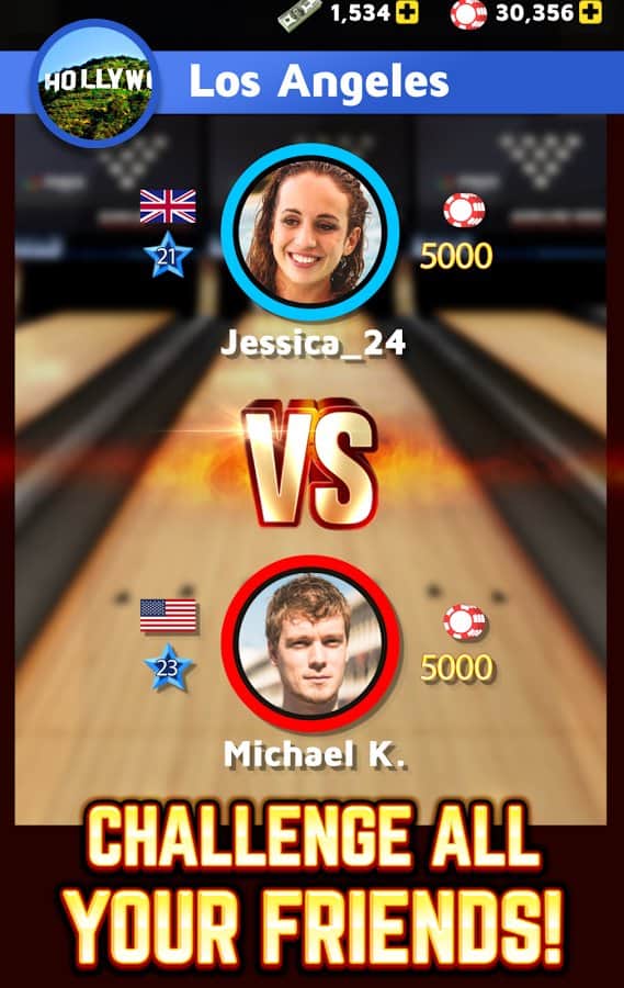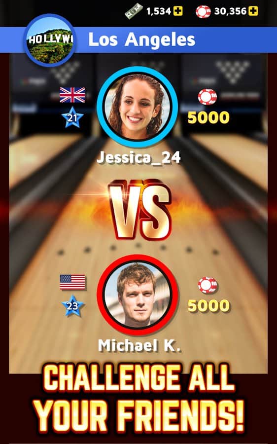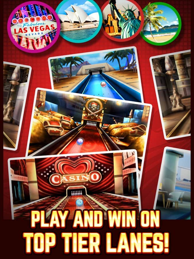 Boliche Rey – excelente boliche para juegos de Android con tus amigos en tiempo real. En este juego puedes jugar en modo multijugador con jugadores de todo el mundo. El juego te ofrecerá un control fácil y una gran cantidad de clubes de boliche en diferentes rincones de nuestro planeta, donde puedes elegir entre más de 60 bolas, así como establecer cualquier pista. Desafía a los mejores jugadores y asciende a la cima en las tablas de clasificación y logros. Además de boliche, juega minijuegos de tragamonedas y ruleta. Gana más de 120 logros y acumula suficientes puntos.