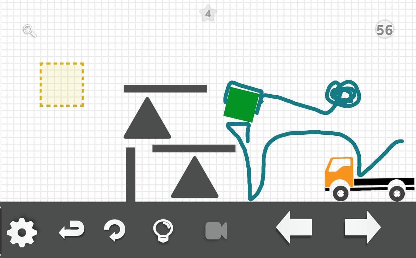¡Piénsalo en el camión! – un emocionante juego de rompecabezas para Android donde tu tarea principal será mover el cuadrado verde a la zona amarilla. El objetivo de este juego a primera vista parece muy simple, pero la dificultad radica en que tienes que trabajar duro con toda tu imaginación para encontrar la solución correcta. Dibuja con tu dedo las diferentes formas, líneas y objetos que interactuarán con otros elementos y se convertirán en un objeto físico. En este juego encontrarás la decisión correcta, pueden ser un gran conjunto. Con cada nuevo nivel, la complejidad del juego aumentará y podrás contar con la ayuda de pistas.