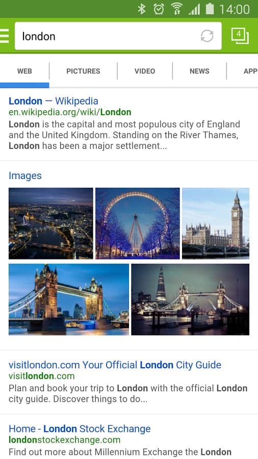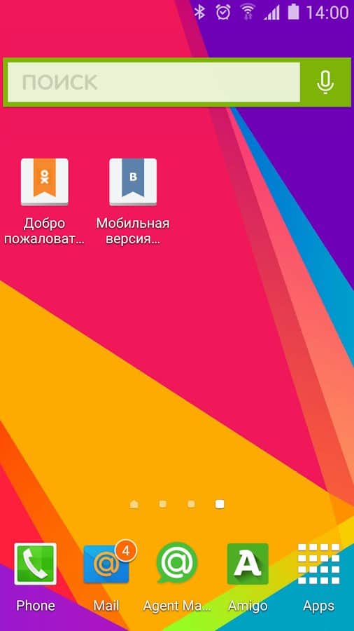 Sistema de búsqueda Mail.Ru integrado en la aplicación.