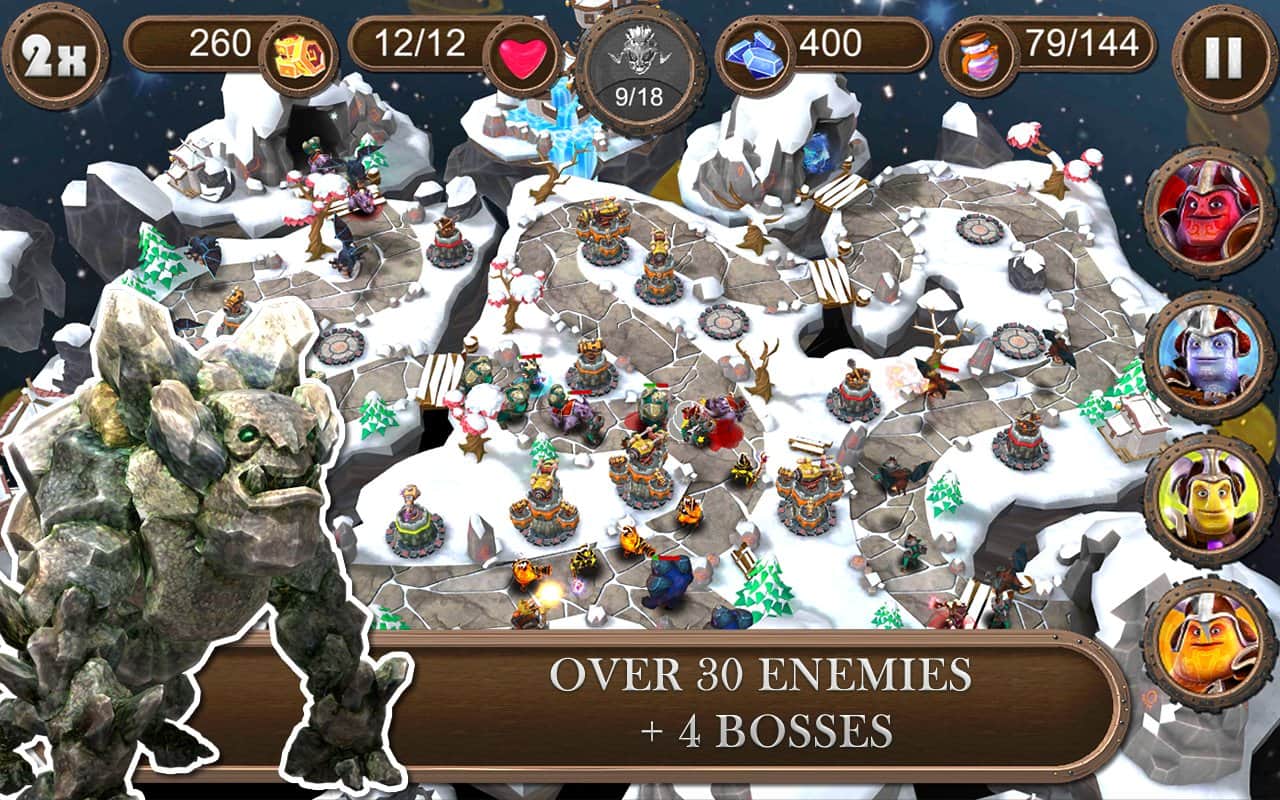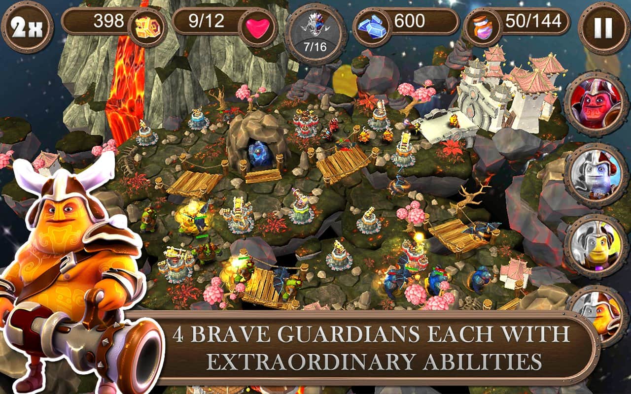 Brave Guardians es un juego de estrategia de fantasía para Android. Elige uno de cuatro personajes, luego el modo de juego y comienza los eventos que marcan época bajo tu estricta guía. Te espera el mundo 4 - Bosque, Lava, Invierno y Desierto con 22 niveles y gráficos en 3D. Torres, mejoras, diferentes propiedades de diferentes personajes, la campaña y defensa, 3 magias, 4 enemigos y un jefe en cada mundo propio. ¡Así como la escala y el espectáculo de lo que está sucediendo!