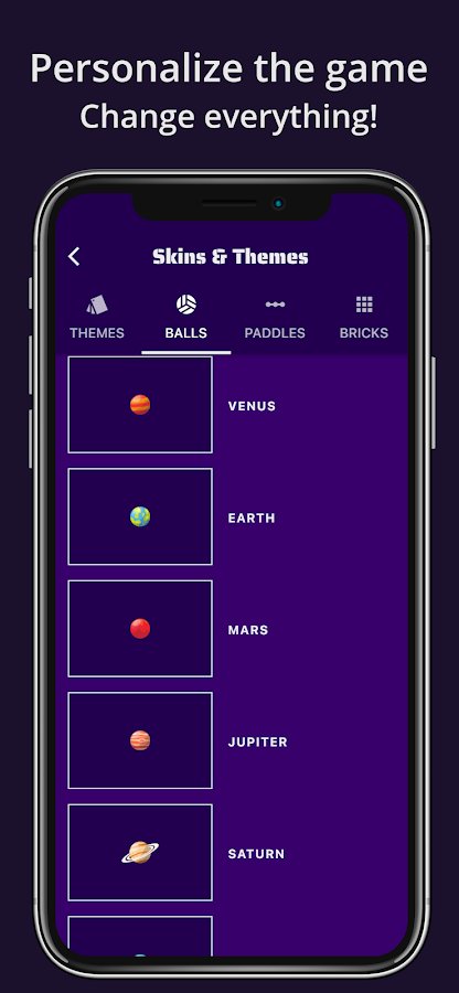 Personalización flexible: más de 20 temas y 50 skins para pelotas, raquetas y bloques.