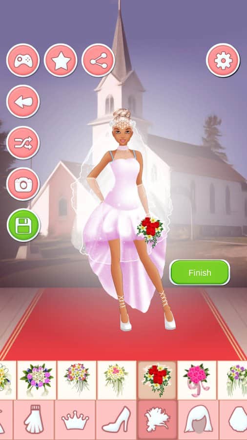 ¡El mejor día! La fiesta, que sueña casi toda chica - su día de boda. Algún día serás una hermosa novia en la vida real, y mientras tanto puedes organizar un ensayo para preinstalar este juego. Selecciona el atuendo perfecto para la novia, elige un peinado, zapatos, con una selección de bolsos y no olvides el ramo de flores que definitivamente atrapará a tu mejor amiga. Cualquier novia quiere lucir perfecta en su día de boda, y solo con tu ayuda los sueños de los personajes principales (cuatro de ellos) pueden hacerse realidad. Después de haber terminado con los últimos preparativos, no olvides tomar una foto de tu hermosa novia y compartirla con tus amigos.