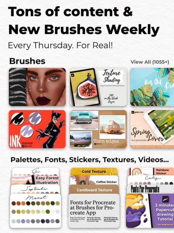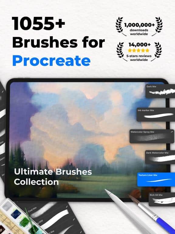 Hermosos pinceles para Procreate. Hay más de cien pinceles geniales con los que puedes crear obras impresionantes que, gracias al nuevo estilo, seguirán viéndose fenomenales. Cualquier pincel, fuente, etc. se instala en un par de clics. Los pinceles son adecuados para Procreate en la versión de iPad y para Procreate Pocket para iPhone. ¡Tus obras realizadas con estos pinceles están permitidas para uso comercial!