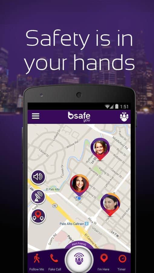bSafe - Alarma de Seguridad Personal – una aplicación única para Android, que informará a tu familia y amigos (círculo de personas seleccionadas en el papel de defensores) sobre tu paradero en caso de una situación peligrosa para la vida con un botón de SOS de emergencia.