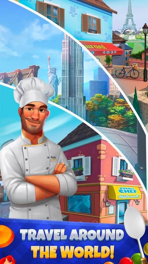 Chef Bubble – dispara burbujas coloridas y ayuda al chef a cocinar nuevas recetas. En este juego, tu tarea principal será juntar la mayor cantidad posible de bolas idénticas y hacerlas explotar. Conecta toda tu habilidad y apunta para disparar bolas coloridas hacia el grupo que está en la parte superior y completa emocionantes misiones. Evita todos los obstáculos en su camino y descubre nuevos ingredientes para deliciosos platos nuevos. Gana bonificaciones y úsalas en el juego. Abre numerosos restaurantes en diferentes partes del mundo y recibe las entusiastas respuestas de los visitantes.