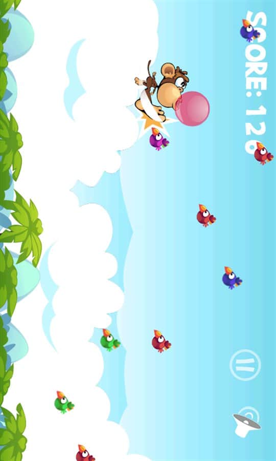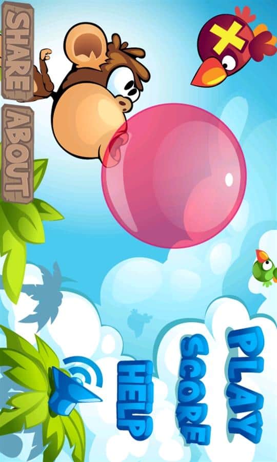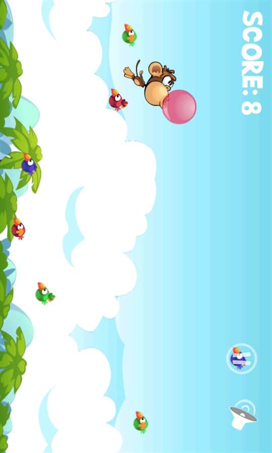 Bubble Gum Air es un juego divertido en el que tienes que controlar a un mono volador que debe volar el mayor tiempo posible. Infla una enorme burbuja y vuela, evitando los molestos pájaros. Además, tu mono puede patear a estos pájaros, así que usa esta habilidad y ve cuán lejos puedes volar. Cuantos más pájaros logres golpear, más puntos obtendrás.