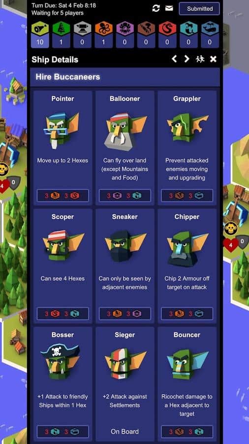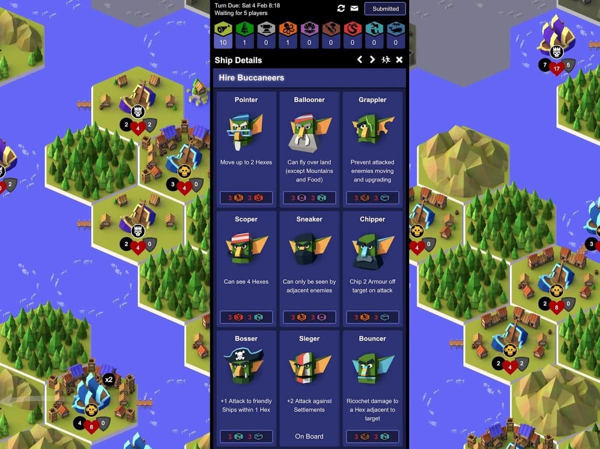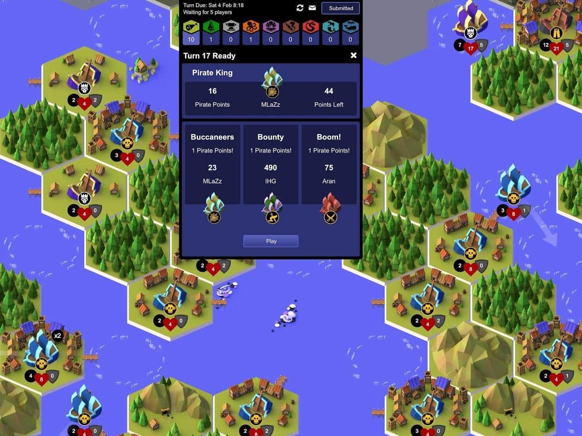 ¡Piratas, Recompensas y Explosiones! - Una estrategia por turnos muy divertida y peculiar en la que puedes jugar solo o contra otros jugadores. La esencia del juego es derrotar a tu oponente, utilizando sus barcos, en barcos, en turnos, podrás construir ciertos tipos de tropas, cada tipo de soldado es responsable de ciertos bonos, ya sea inteligencia o atacar al enemigo. Y los barcos que puedes construir en ciudades, así que las ciudades pueden ser mejoradas. El juego tiene varios tipos principales de recursos que deben ser extraídos y utilizados inteligentemente.