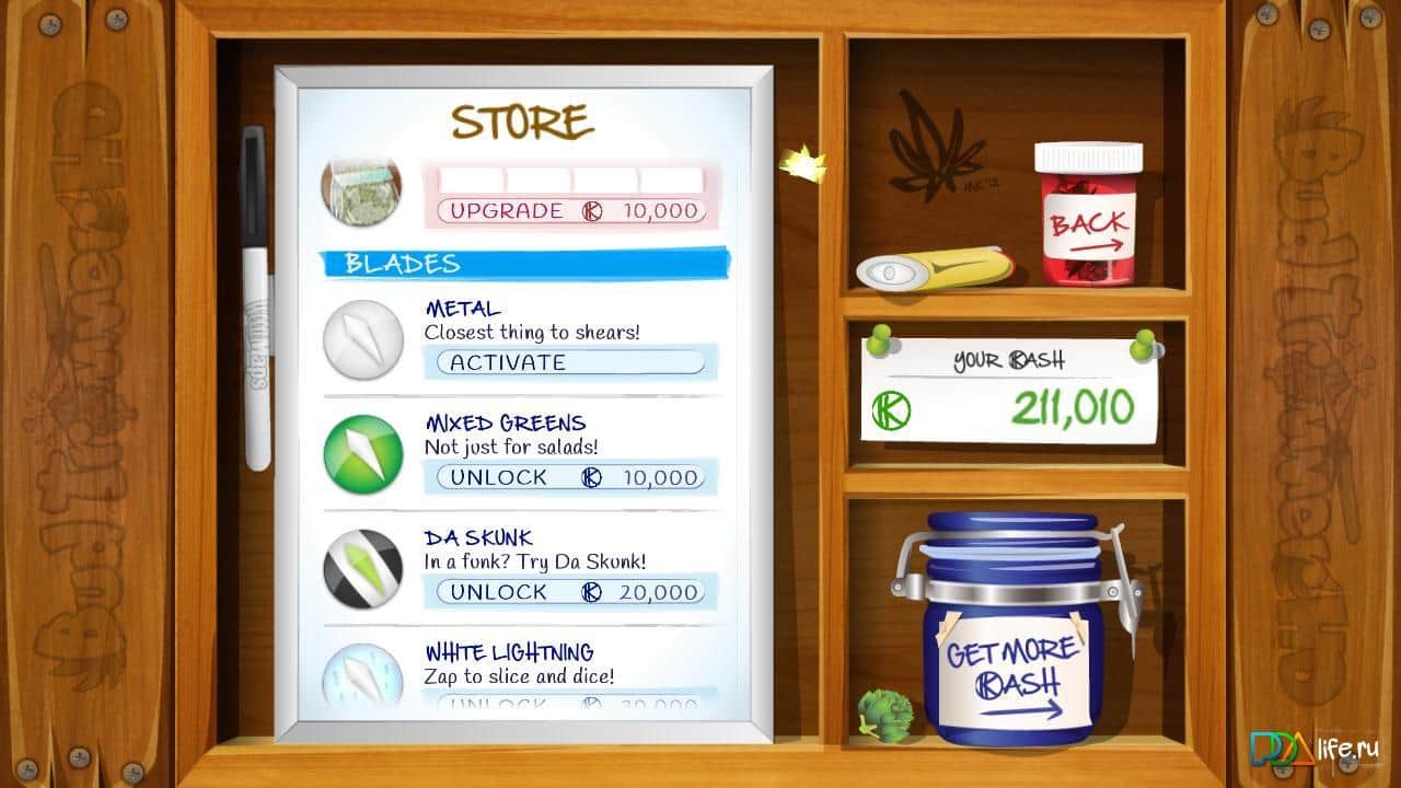 BudTrimmer - Hierba y Cannabis - un juego en Android en el que tienes que cortar cogollos de marihuana. Cultívalos y córtalos usando una variedad de cuchillos. Juega con tus amigos y gana tantos puntos como sea posible para desbloquear niveles bonus.