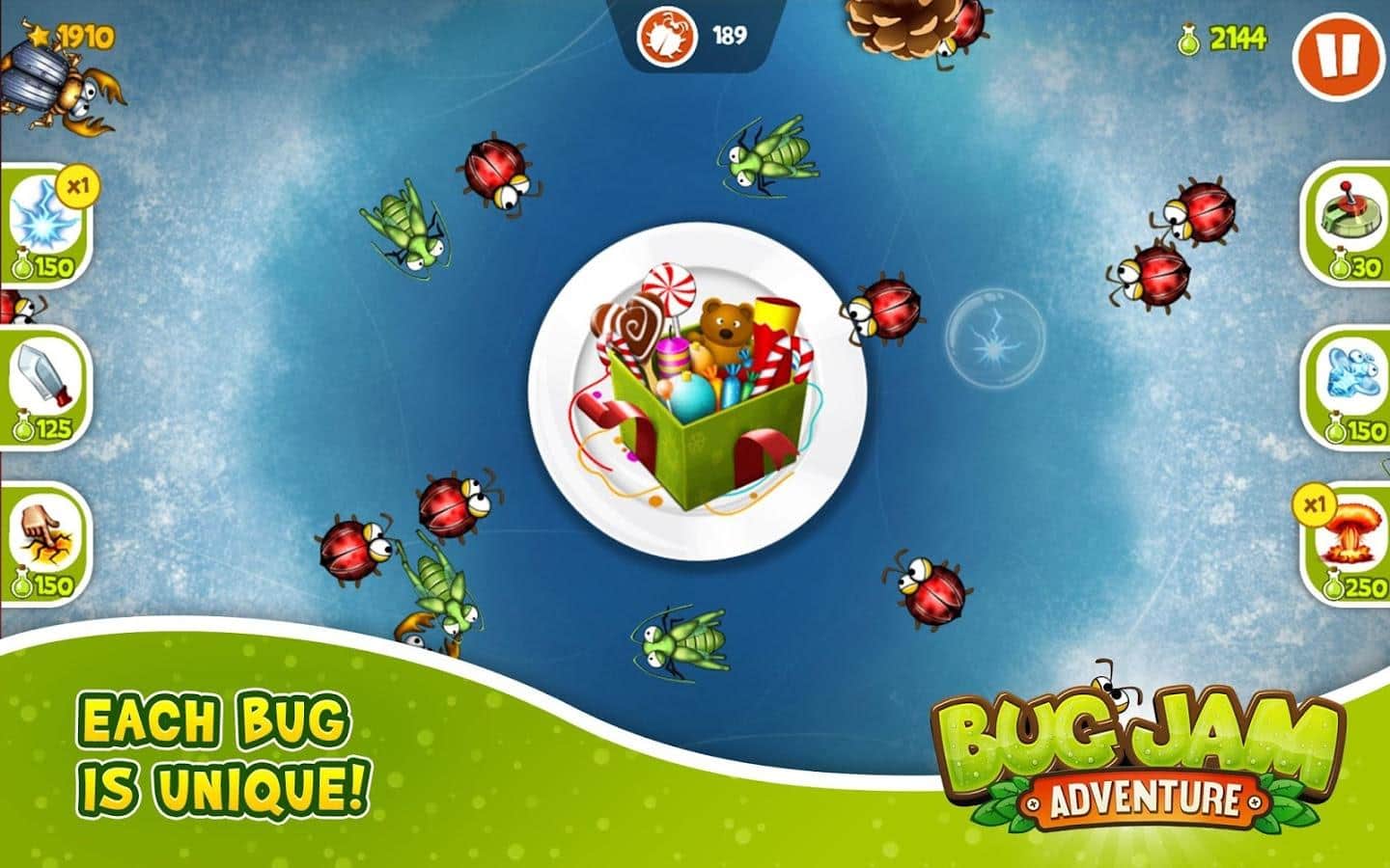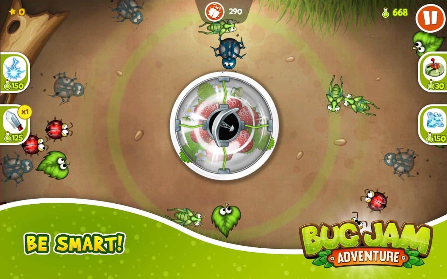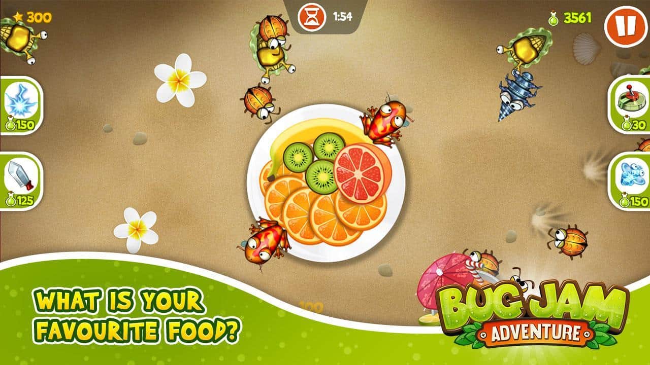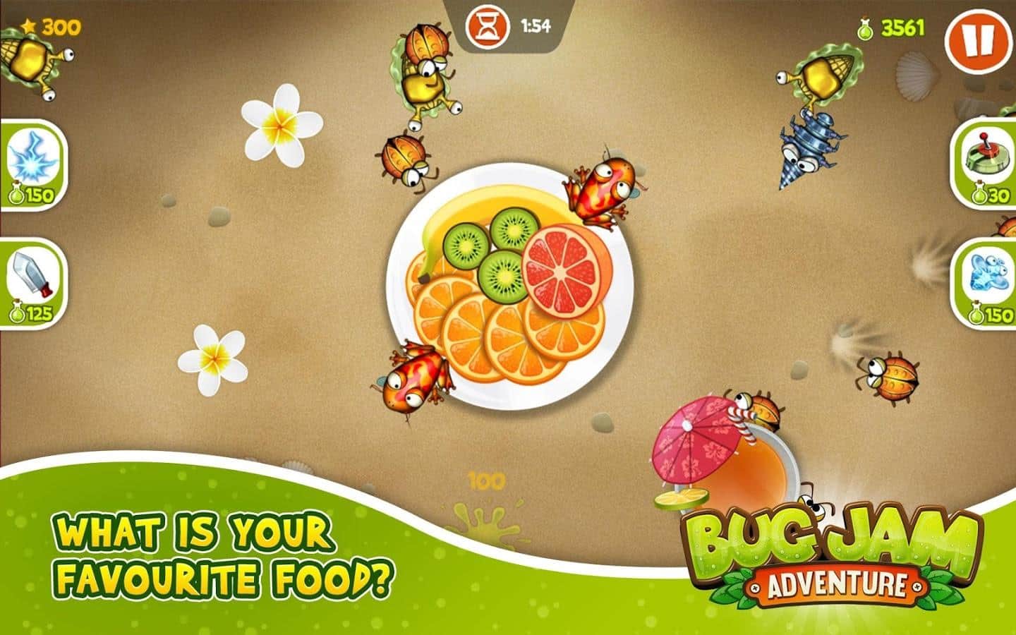 Aventura de Jam de Insectos – tu dulzura está siendo atacada por varios escarabajos y orugas, déjalos luchar en este juego para Android. En el centro de la pantalla hay un plato con pasteles y dulces rodeado de insectos que se arrastran, tu tarea será, utilizando toques en la pantalla, no dejar que coman tus bocadillos. Aplasta insectos y bichos con tu dedo y congélalos, destrúyelos con fuego y hazlos volar con bombas. Establece tu récord en este juego y cuenta con la ayuda de ranas, que destruirán insectos en bolas.