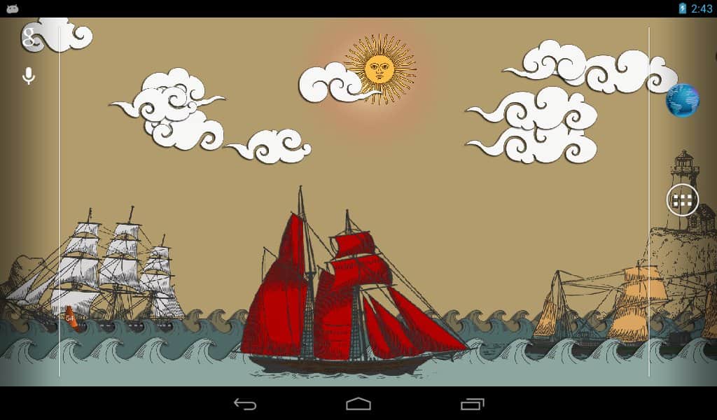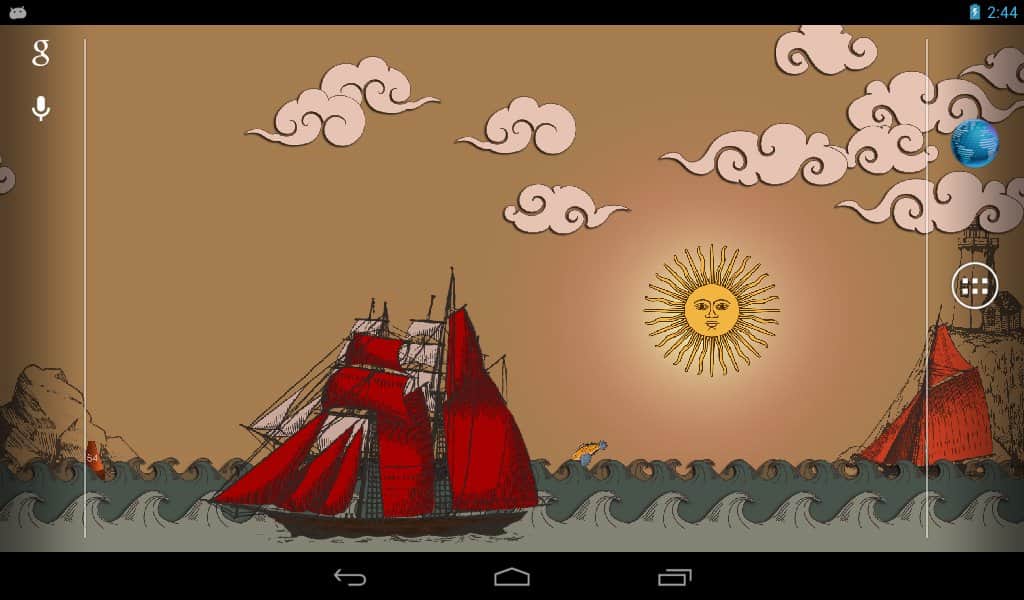 Fondo de Pantalla en Vivo 'Mar de Papel' – un bonito y discreto fondo de pantalla en vivo para dispositivos Android del desarrollador happyLWP. Estos fondos de pantalla se pueden llenar y personalizar a tu gusto desde el cambio de día y noche, los viejos barcos de las nubes, los peces saltando hasta la cantidad de estrellas en la noche, y mucho más. Haz que la pantalla de tu dispositivo tenga un fondo de pantalla altamente original 'Mar de Papel' y disfruta de los barcos de vela en el espacio marino.