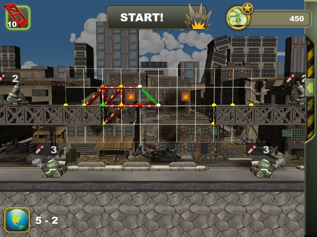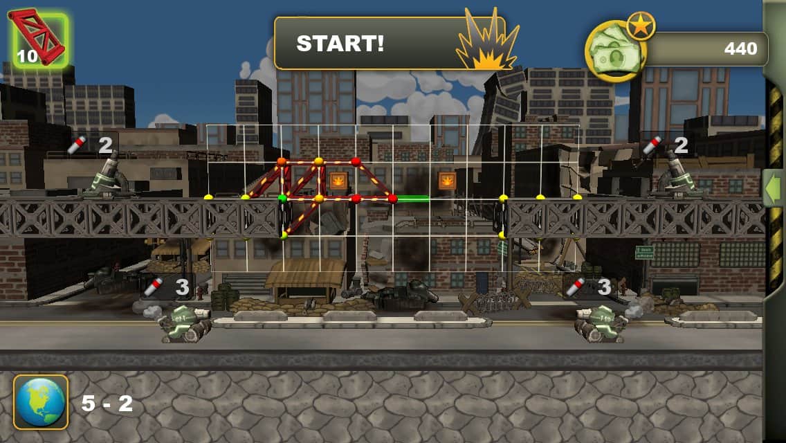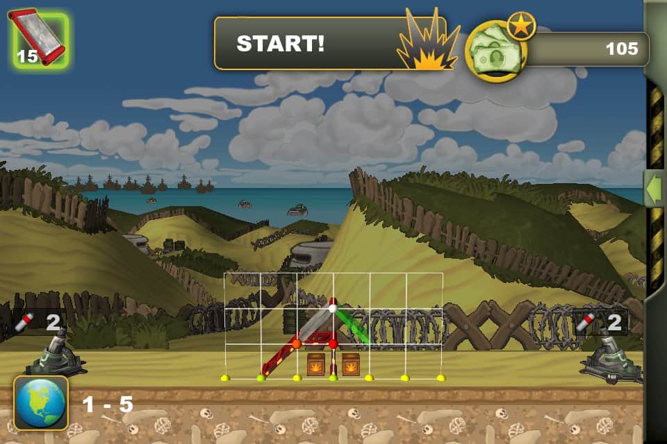Constructor de Búnkeres – una estrategia de construcción en Android, donde deberás construir un búnker resistente. A lo largo de 45 niveles, tu objetivo será construir un búnker de hormigón armado utilizando diversos materiales como: bloques de acero, hormigón y bloques con protección blindada. Para obtener los mejores resultados, combina los materiales ofrecidos en el juego y lograrás un resultado significativamente mejor. Después de construir el búnker, será atacado por enemigos que lo bombardearán con artillería, tanques y bombas. Haz el máximo esfuerzo para vencer al enemigo y no dejes que destruya tu búnker.