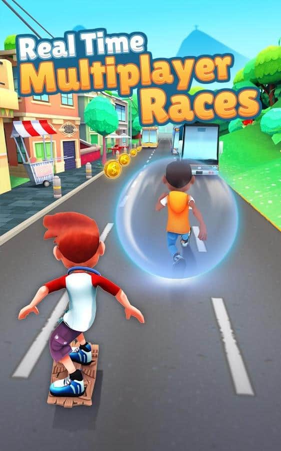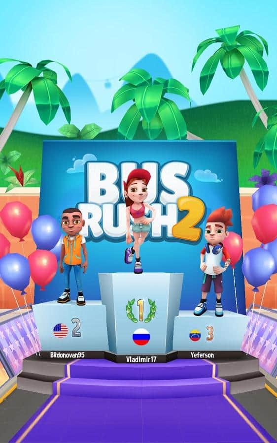 Bus Rush 2 Multijugador – un juego en Android, que cuenta con el modo multijugador. En este juego controlarás a un valiente héroe que decidió atrapar el autobús y salir a correr por Río de Janeiro. Presiona en cada lado de la pantalla y mueve al personaje principal de lado a lado para saltar y deslizarte. Desafía a jugadores reales de todo el mundo y juega con ellos, corriendo por la ciudad y recolectando monedas.