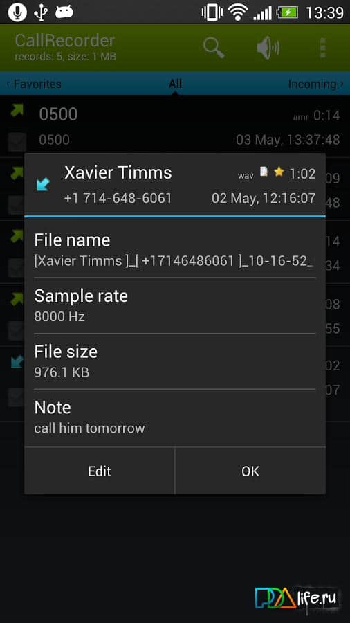 Grabador de llamadas para smartphones Android. Cada uno de nosotros sabe que, a veces, es necesario e indispensable tener un programa así para grabar conversaciones telefónicas. La grabación comienza en el momento de la conversación y se detiene cuando se desconecta. También tiene una opción útil para eliminar las llamadas seleccionadas.