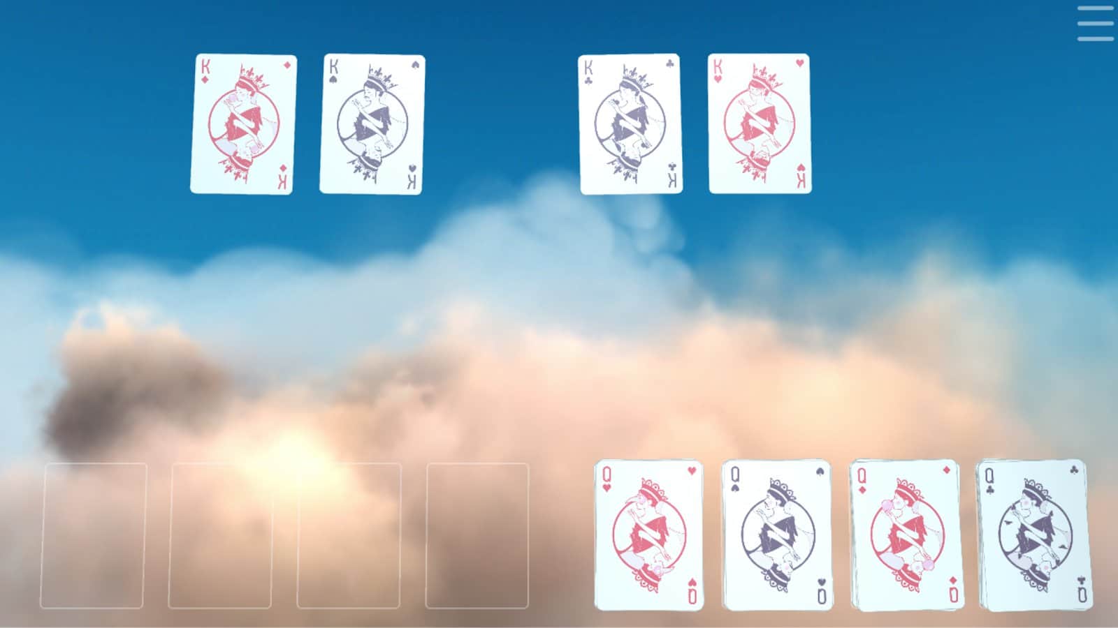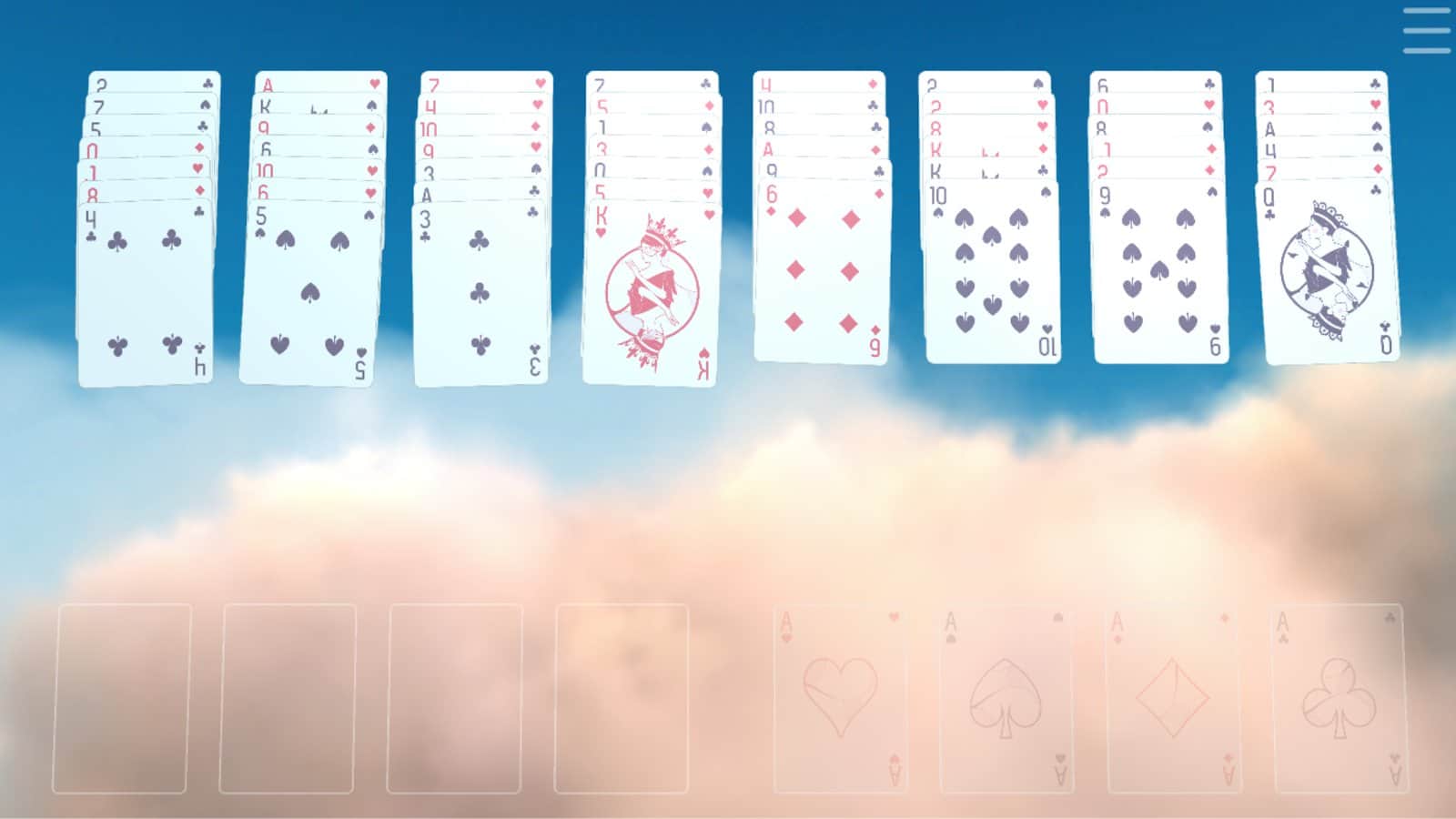Calm Cards – Solitaire – juego de cartas entretenido para Android donde jugarás un solitario. Este juego te sumergirá en la atmósfera de descanso, meditación y un ambiente agradable. Juega a este juego en cualquier momento libre y avanza por los niveles recogiendo puntos. Los jugadores apreciarán una hermosa y suave animación, un fondo animado de cielo y música relajante con los sonidos de los pájaros. Combina las cartas en secuencia y completa los niveles en el menor tiempo posible.