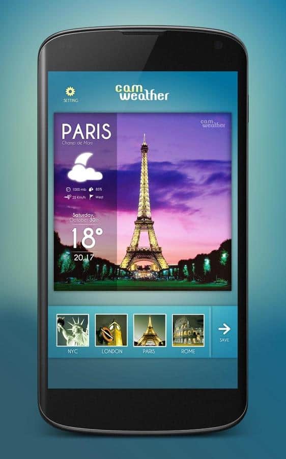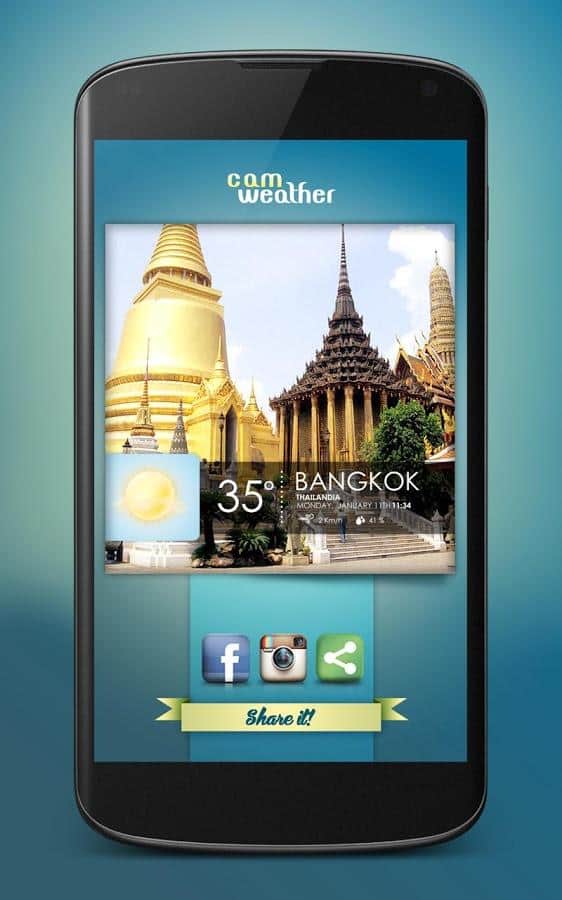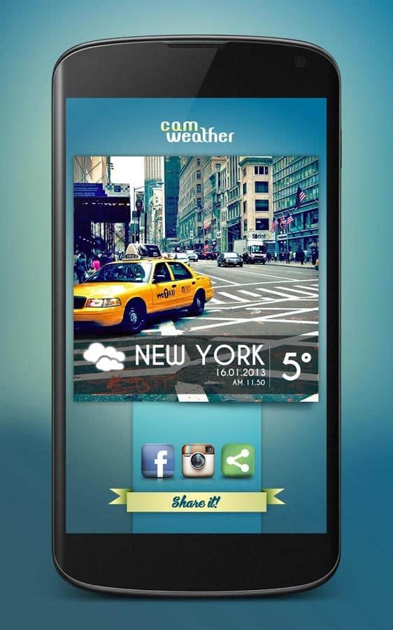 CamWeather es un gran widget del clima para Android con la capacidad de superponerlo en una imagen o foto, ya que participas en la selección de la información necesaria y su posición en la pantalla de tu dispositivo.