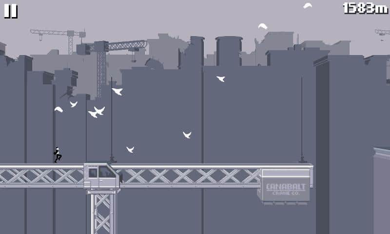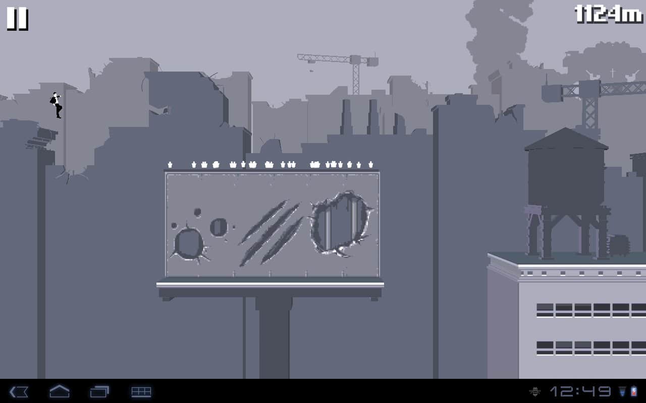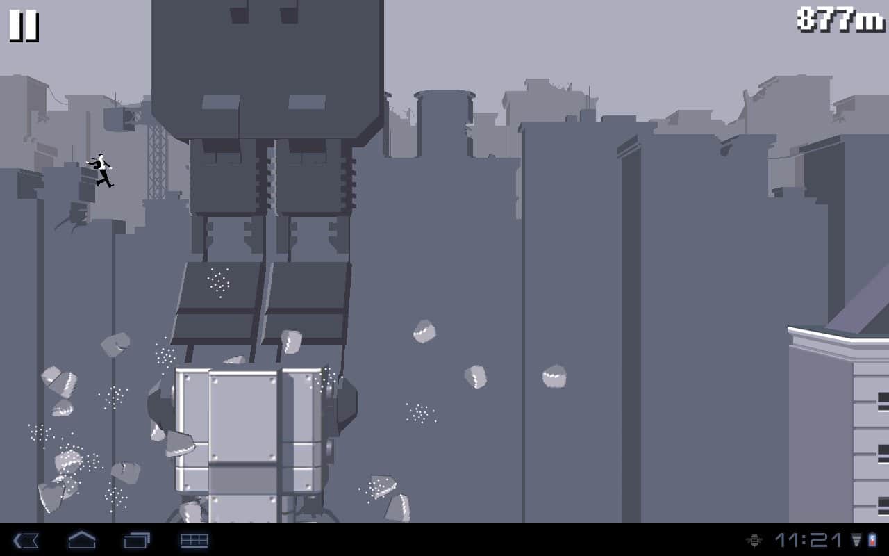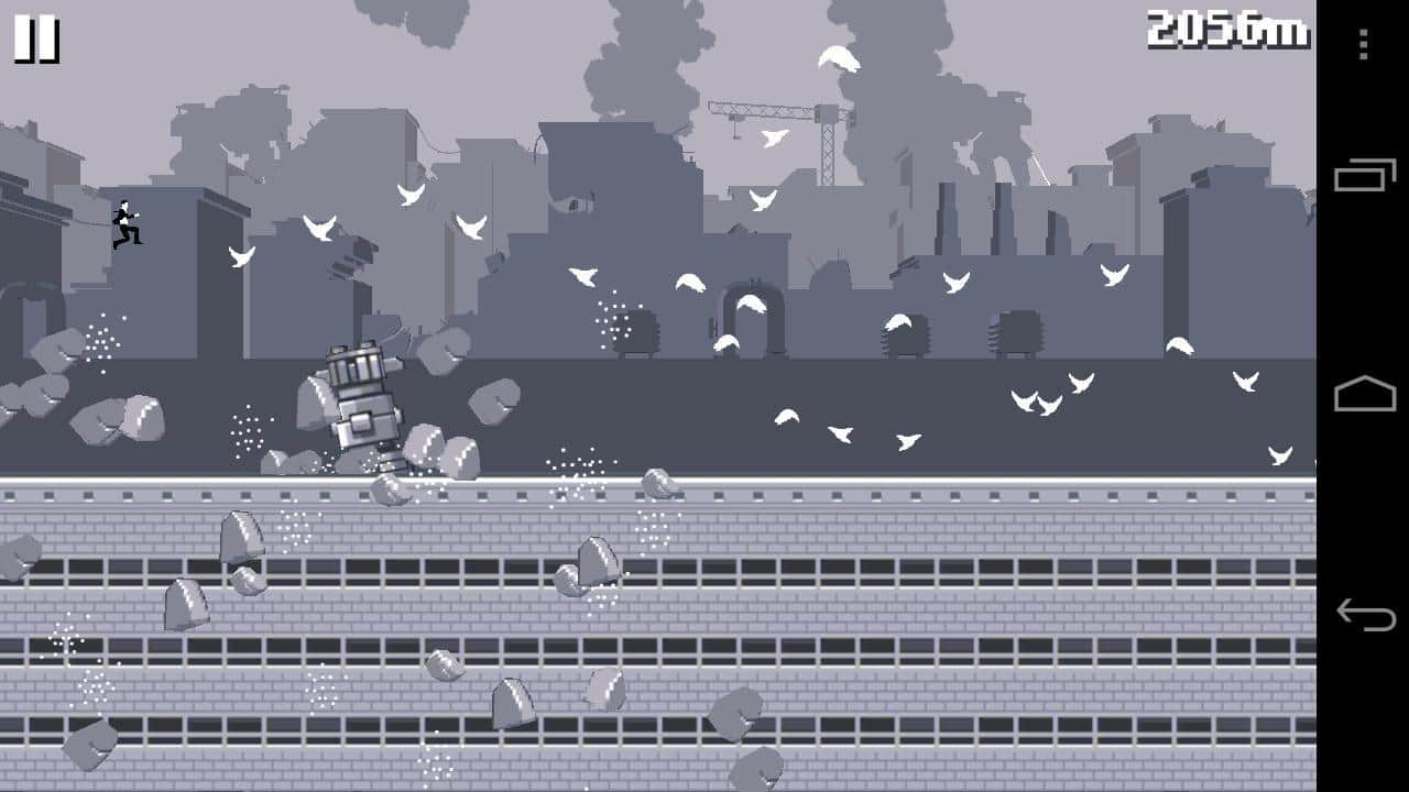 Canabalt HD - un "runner" en blanco y negro. Tu tarea es salir de la espantosa metrópoli, que fue destruida por civilizaciones extraterrestres... Corre mientras puedas. En el camino, te interferirán para resolver este problema de la única manera posible: elimina obstáculos, empújalos del techo, salta a través del vacío y corre todo el tiempo. ¡Y a tu alrededor todo se colapsa y se va al infierno! No importa - ¡CORRE!!!!