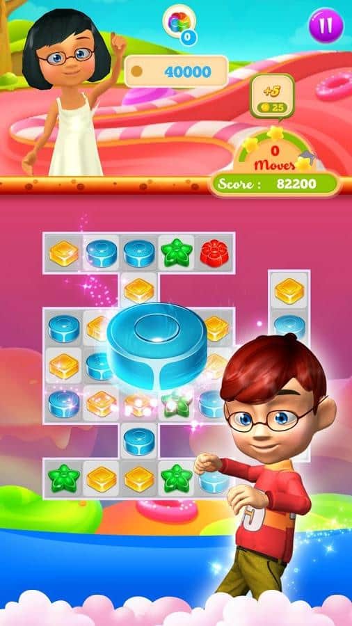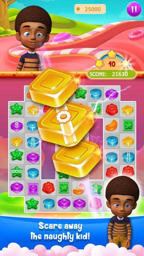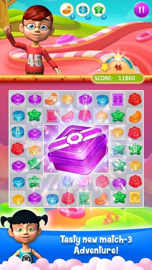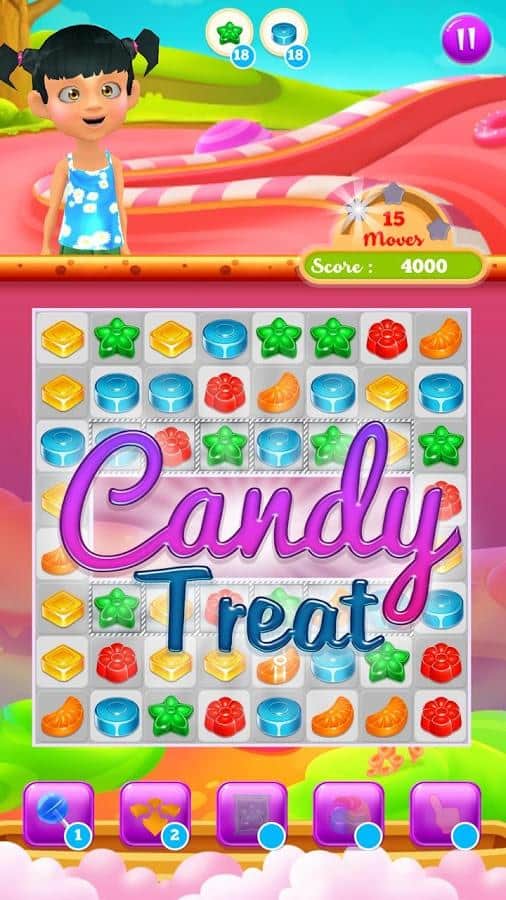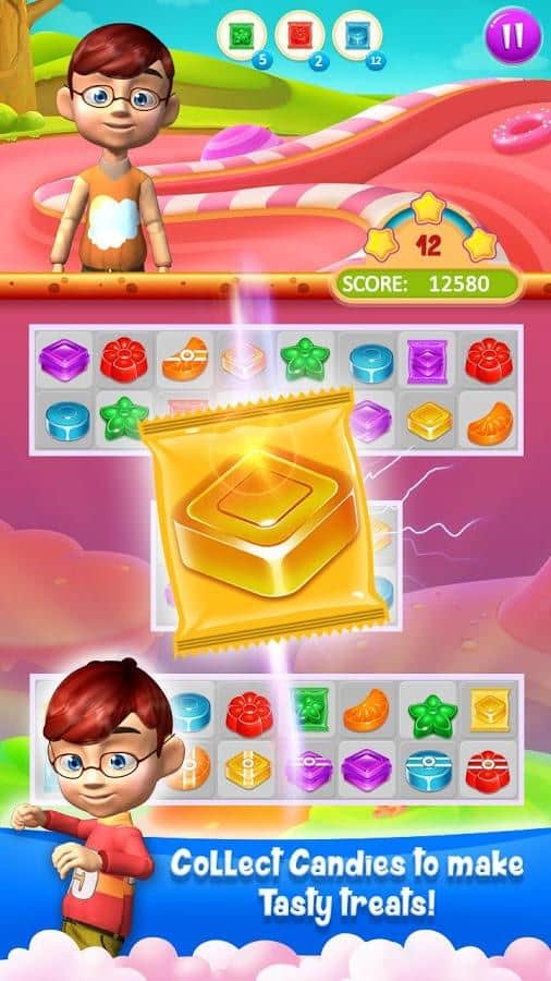 Candy Treats es el género de juego tres en raya en Android donde ayudarás a los niños a recoger caramelos. En este juego te encontrarás en un campo donde hay numerosos caramelos, tu tarea será recogerlos de las filas y hacerlos estallar. Prepárate para un fascinante viaje a través de un mundo de hadas y ayuda a los niños a descubrir nuevos tipos de caramelos, realizando diversas tareas. Crea filas largas de caramelos y obtén varios bonos. Haz estallar todos los obstáculos en tu camino y comienza una reacción en cadena. En este juego encontrarás muchos niveles diferentes, personajes adorables y varios bonos.