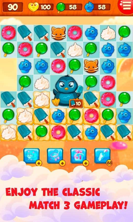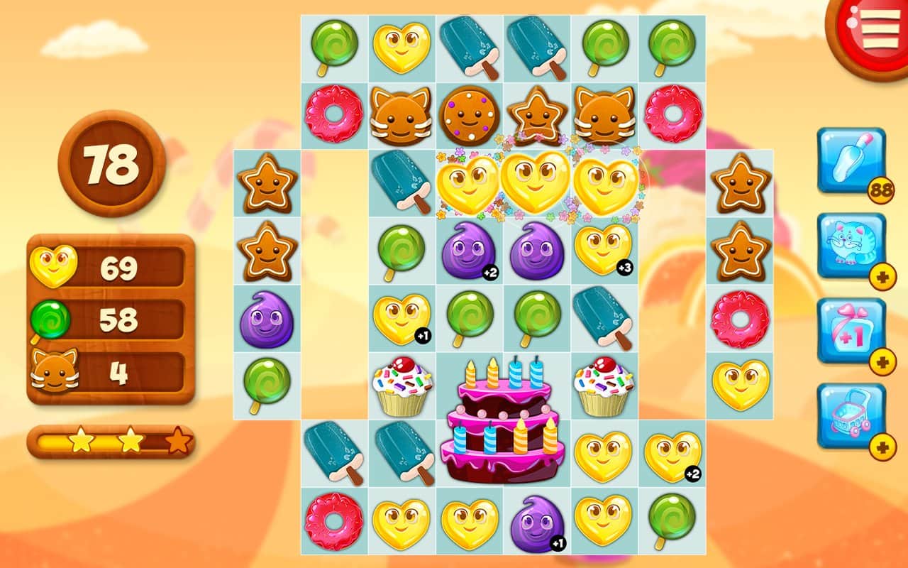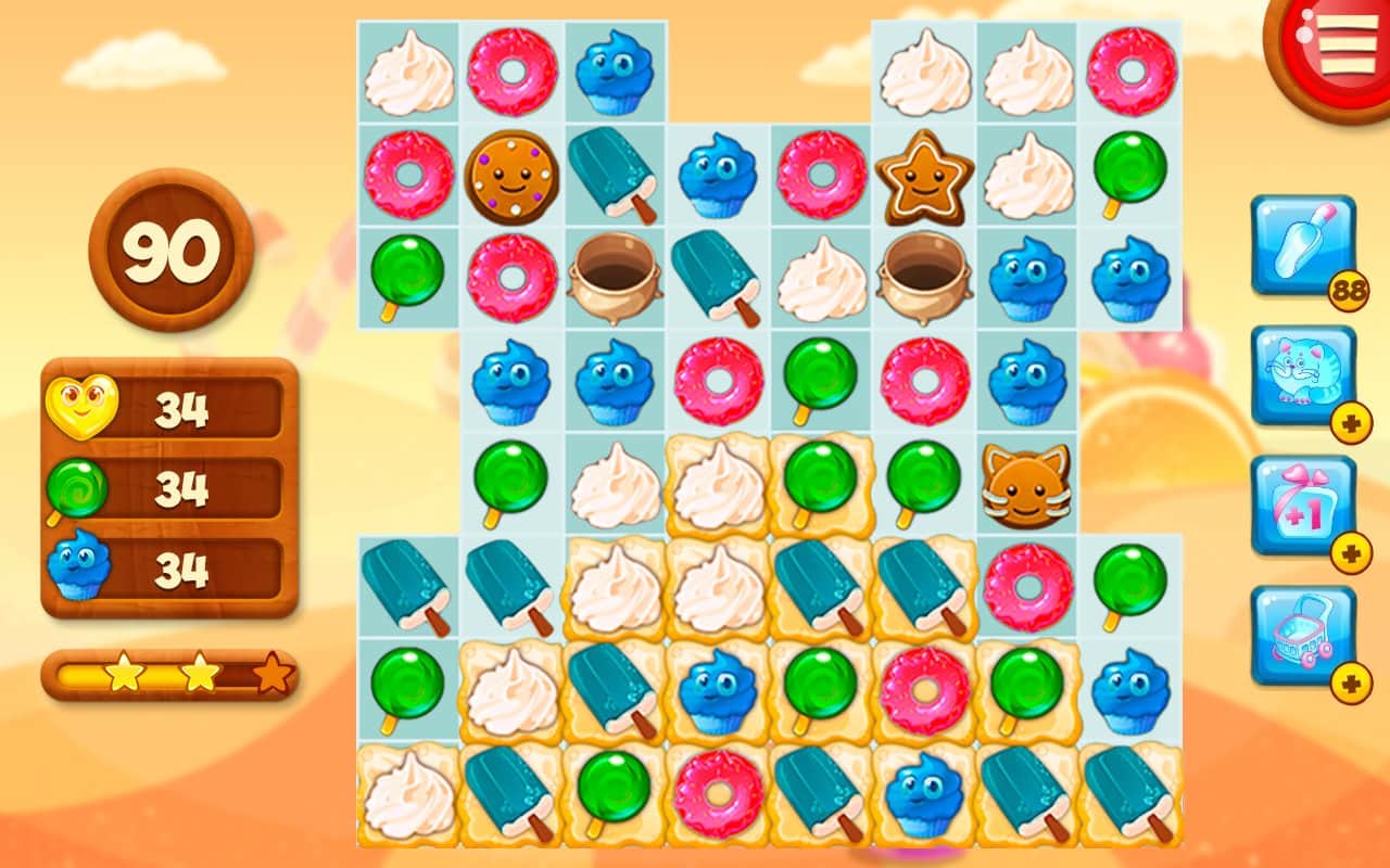 Dulces del Valle – si estás asistiendo a los dulces pensamientos. Entonces adelante, instala el juego y disfruta del clásico de "tres en raya". Con la mejor pastelería de todo el Valle del Dulce Edward y tu fiel asistente Ella, vamos a recopilar las mejores recetas de deliciosos postres. Como en todos los demás juegos de este género, necesitas reunir tres del mismo objeto en una línea y luego desaparecerán del campo de juego, lo que te dará puntos extra. Un arcoíris de colores te permitirá pasar de un nivel brillante a otro. ¡Disfruta del juego!