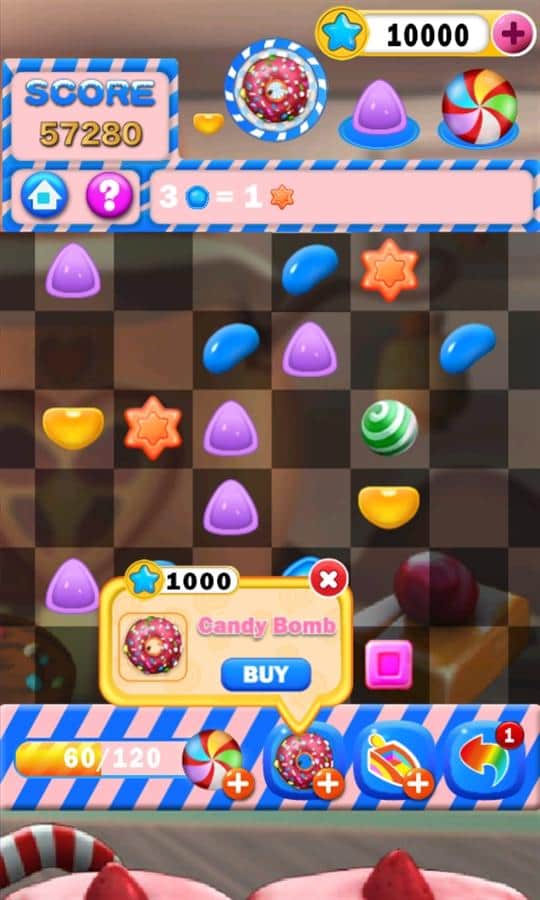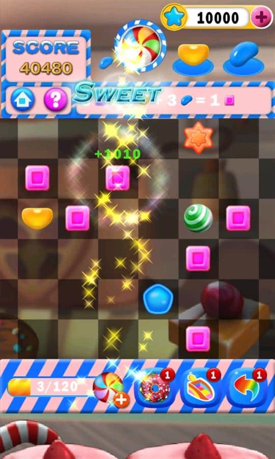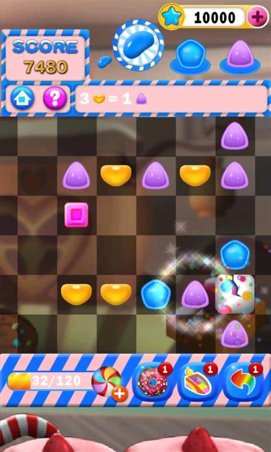 Candy Village - el colorido juego de arcade dulce para teléfonos Windows. Es necesario reflexionar - un gran pasatiempo. Debes construir cadenas de tres o más ingredientes, que al conectarlos obtienes una diferente repostería, que a su vez también puede ser utilizada para crear nuevas obras maestras. Tu tarea es hacer que el campo de juego no se llene el mayor tiempo posible, es decir, ¡crear los dulces definitivos!