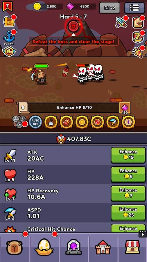 Capibara Superviviente: Batalla Ociosa - Fuerzas oscuras amenazan el destino del mundo de los capibaras. El capibara lucha por sobrevivir en mapas difíciles contra poderosos monstruos que han venido de muchos lugares. Mejora las habilidades del capibara, adquiere nuevo equipo y desbloquea más mascotas para derrotar a los malvados enemigos que te atacan. Numerosos niveles de defensa, una amplia variedad de armas y un sistema de objetos excepcional son todas características de este juego.
