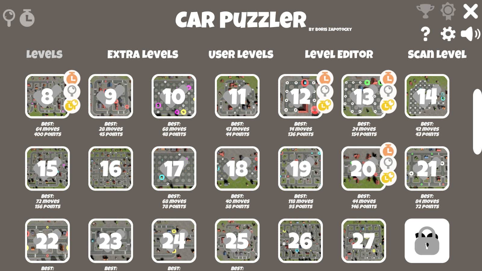 Car Puzzler es un juego de rompecabezas lógico con jugabilidad posicional donde tu tarea es despejar el camino para cada coche en las calles de la ciudad cuando es necesario observar una serie de reglas, incluyendo PPD. Encontrarás más de 60 niveles, desde los más simples hasta los más complejos, ejecutados en forma de áreas urbanas. Además, el juego implementa un editor de niveles que te permitirá no solo realizar tu creatividad, sino que también podrás probarla con otros jugadores. Visualmente, el juego es digno de elogio, una agradable gráfica dibujada a mano combinada con modelos detallados complementa perfectamente la imagen.