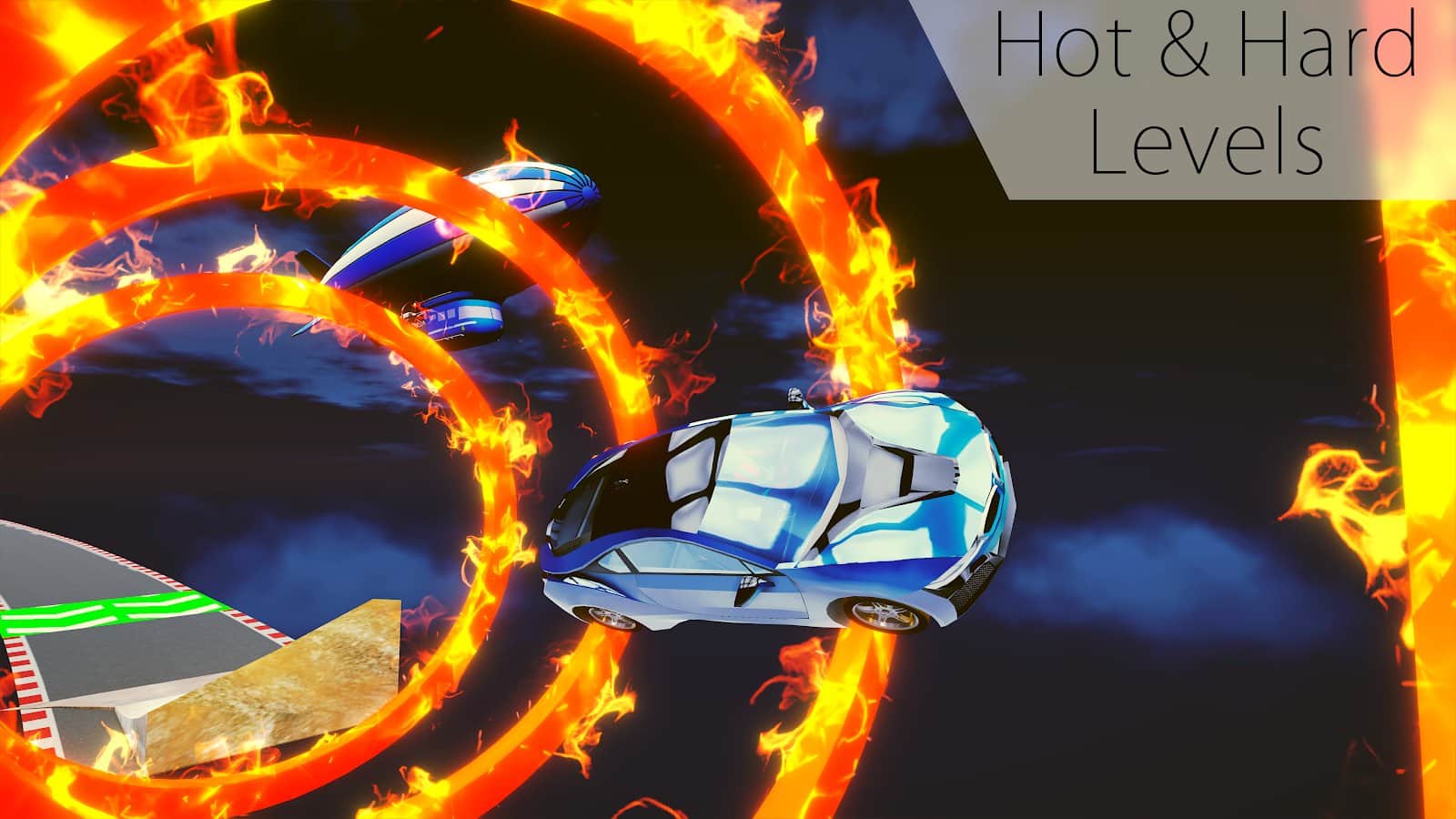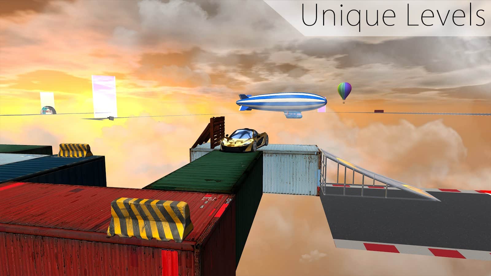 Car Stunts X – juego de carreras dinámico para Android donde realizarás conducción extrema en derrapes y acrobacias. Elige entre los muchos coches presentados en el juego y disfruta de las carreras peligrosas. Una pista de carreras estrecha y peligrosa construida a gran altura sobre la ciudad y escondida entre las nubes. Toma el control de tu coche y concéntrate en realizar correctamente las acrobacias peligrosas y trata de mantenerte en la pista sin caer. En las pistas de este juego te esperan descensos y ascensos pronunciados, una gran cantidad de trampas, aros en llamas y saltos. Prepárate para la conducción extrema y no olvides recoger monedas en el camino.