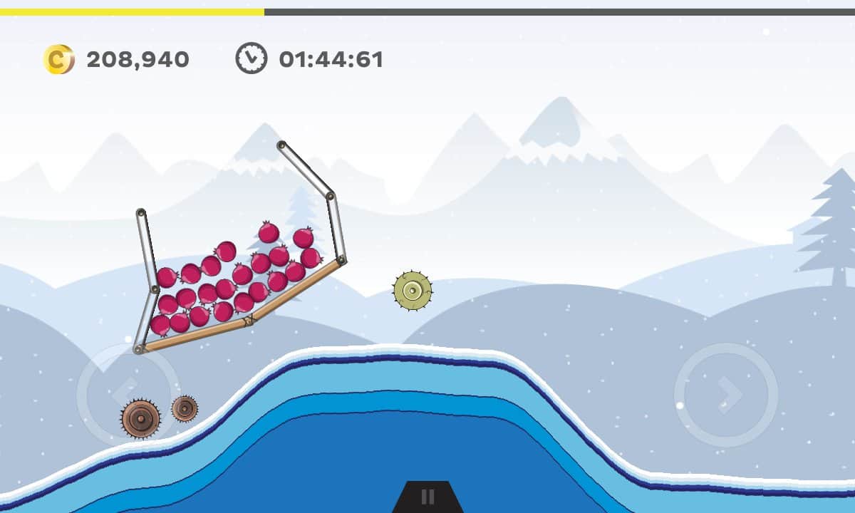Juego Carry Over The Hill para Android, con un gran motor de física. Tu tarea es construir un vehículo que ayude a transferir la carga de manera segura. Construye todo lo que quieras, agárrate a una, dos, 5 ruedas, construye el tanque, en general el juego está limitado solo por tu imaginación. Tu objetivo principal es, a tiempo y lo más rápido posible, llegar a la línea de meta.