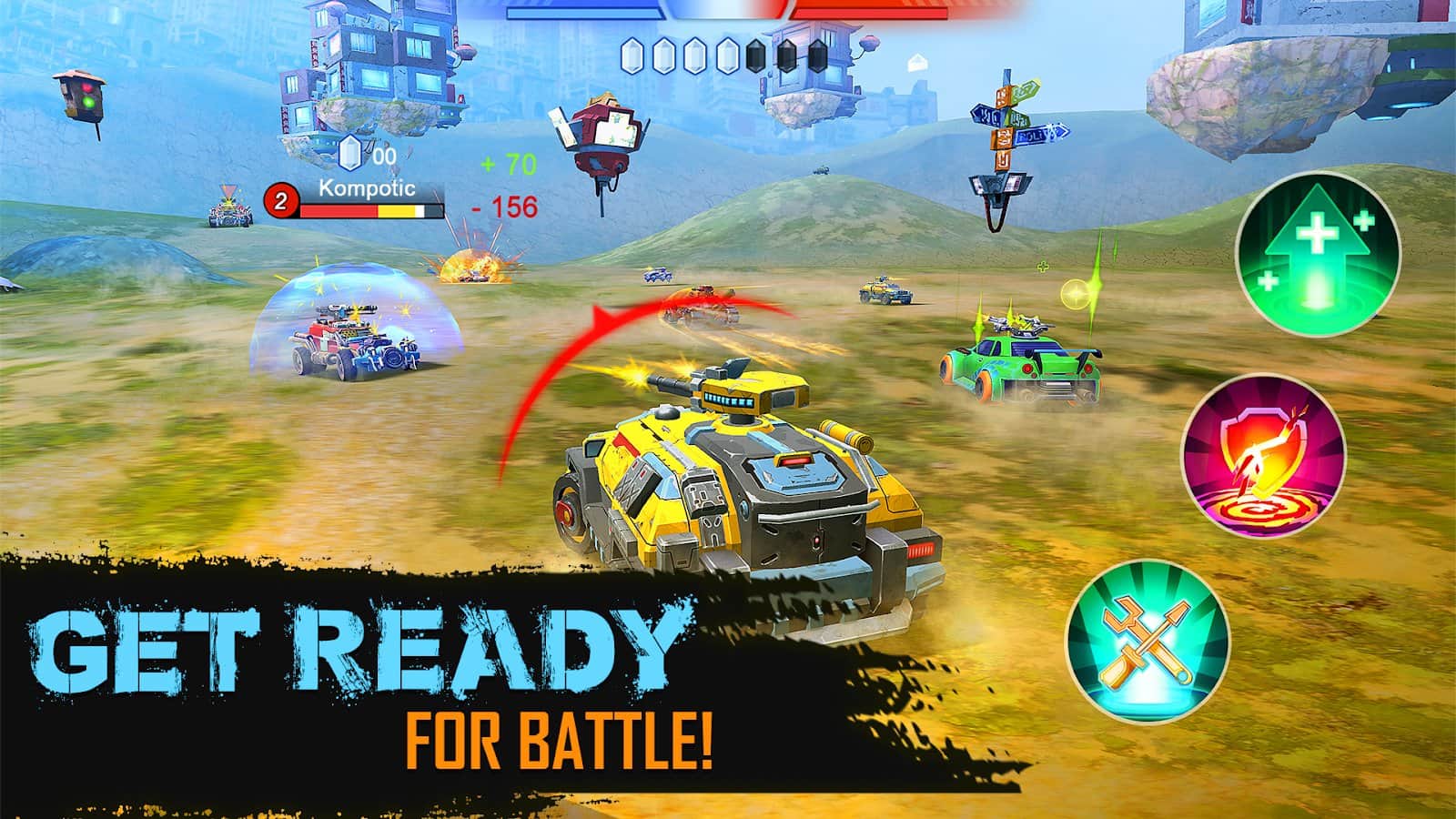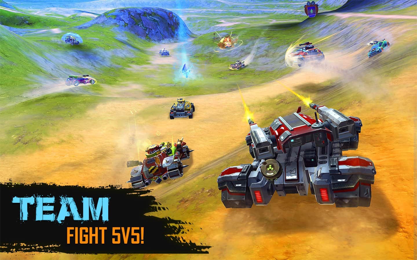 Un shooter de Cars of War para Android donde controlas la velocidad y giras entre todas las máquinas. En el juego participarás en las peleas que tienen lugar en un 5 contra 5 en diferentes universos. Elige tu coche de tres clases diferentes, cada una con mecánicas únicas y un conjunto de armas. Persigue a través de numerosas ubicaciones en compañía de oponentes y trata de ser más rápido para recoger todos los cristales que aparecen en el mapa. Sigue luchando con múltiples oponentes y apunta bien para destruir al enemigo.