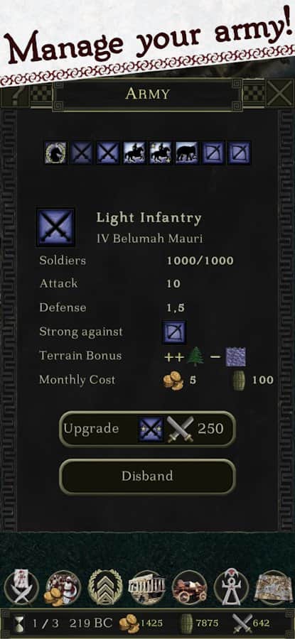 Cartago: Bellum Punicum - te encuentras en la Segunda Guerra Púnica. Te conviertes en la antigua Cartago, que ha sido declarada la guerra por los romanos. Gestiona tu ejército para repeler sus maliciosas incursiones. Lo construirás tú mismo, y te llevará ya sea a la victoria o a la derrota. ¡Puedes llevar a cabo incursiones tú mismo y hacer que los romanos huyan! Interactúa con el Senado para llevar a cabo mejor las operaciones militares y derrotar a los maliciosos habitantes del Tíber. Pero todo tiene su tiempo, ya que el tiempo en el juego avanza bastante lentamente y está cerca de la realidad. Reescribe la historia y sé el primero en conquistar Roma de una vez por todas.