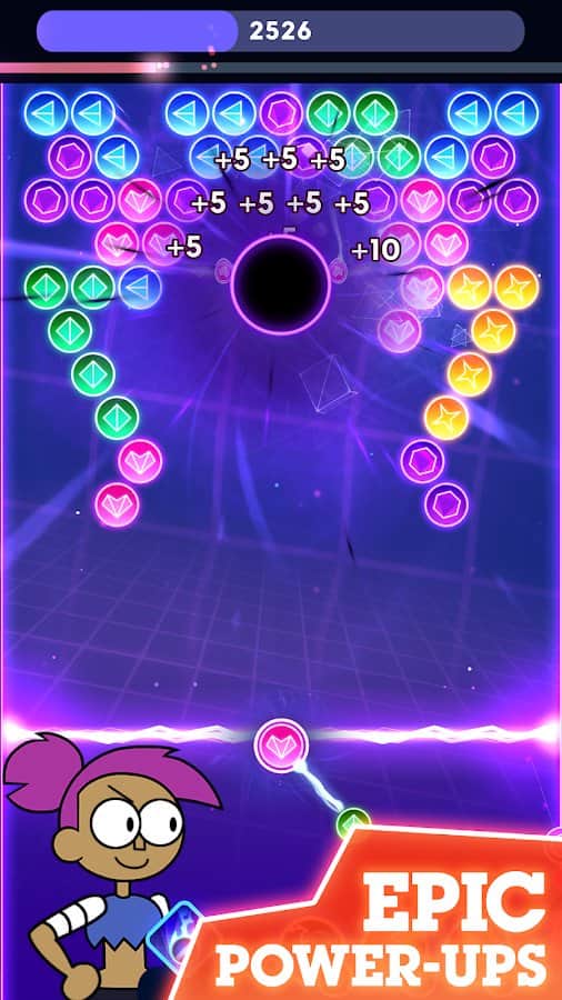 Cartoon Network Plasma Pop – un juego entretenido sobre tirador de burbujas para Android donde volverás a encontrarte con tus personajes favoritos de Cartoon Network. Dispara las burbujas de plasma y trata de limpiar el tablero de todas las burbujas. En el juego puedes jugar con Gumball, Teen Titans GO!, Steven Universe, Ben 10, We Bare Bears y muchos otros personajes. Explora los modos de juego y prueba tus habilidades atrapando burbujas en el modo Desafío y completa todos los niveles con un número limitado de disparos. Colecciona bonificaciones y abre un agujero negro en las partidas instantáneas para empujar cada plasma a la vista.