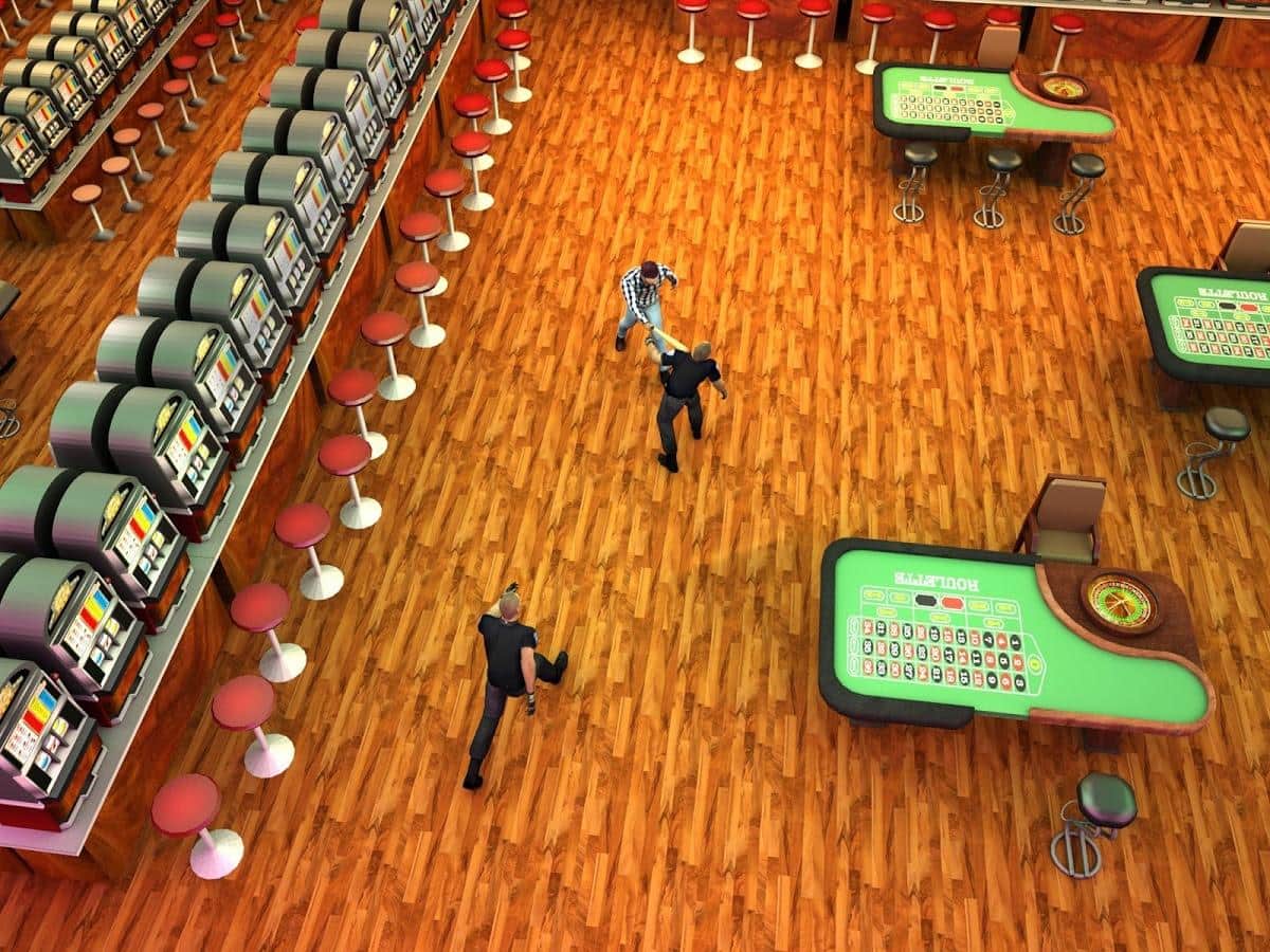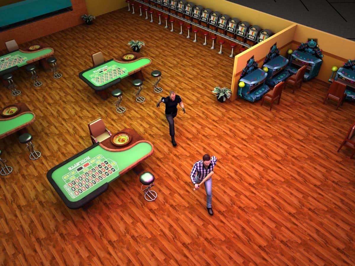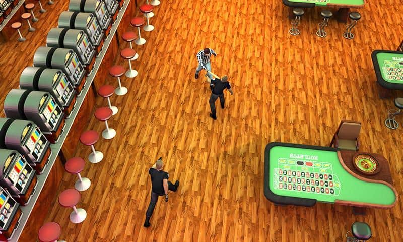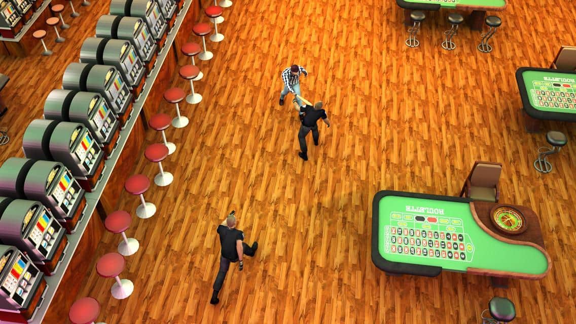 Casino loco Boxeo 3D es un interesante juego de acción en Android donde ayudarás al héroe a recuperar sus ganancias y salir del casino. Nuestro héroe rompió el jackpot, pero el casino decidió no pagarle la ganancia y envió a los guardias para llevar de vuelta al héroe al casino. Toma un bate de béisbol y rompe todo a tu paso mientras intentas no ser atrapado por los malvados guardias y los depredadores dinosaurios que no dudarán en comerte. Explora todas las habitaciones y los salones de un enorme casino y ayuda al héroe a escapar a la libertad ileso. Ten cuidado y no dejes que el enemigo te derrote.