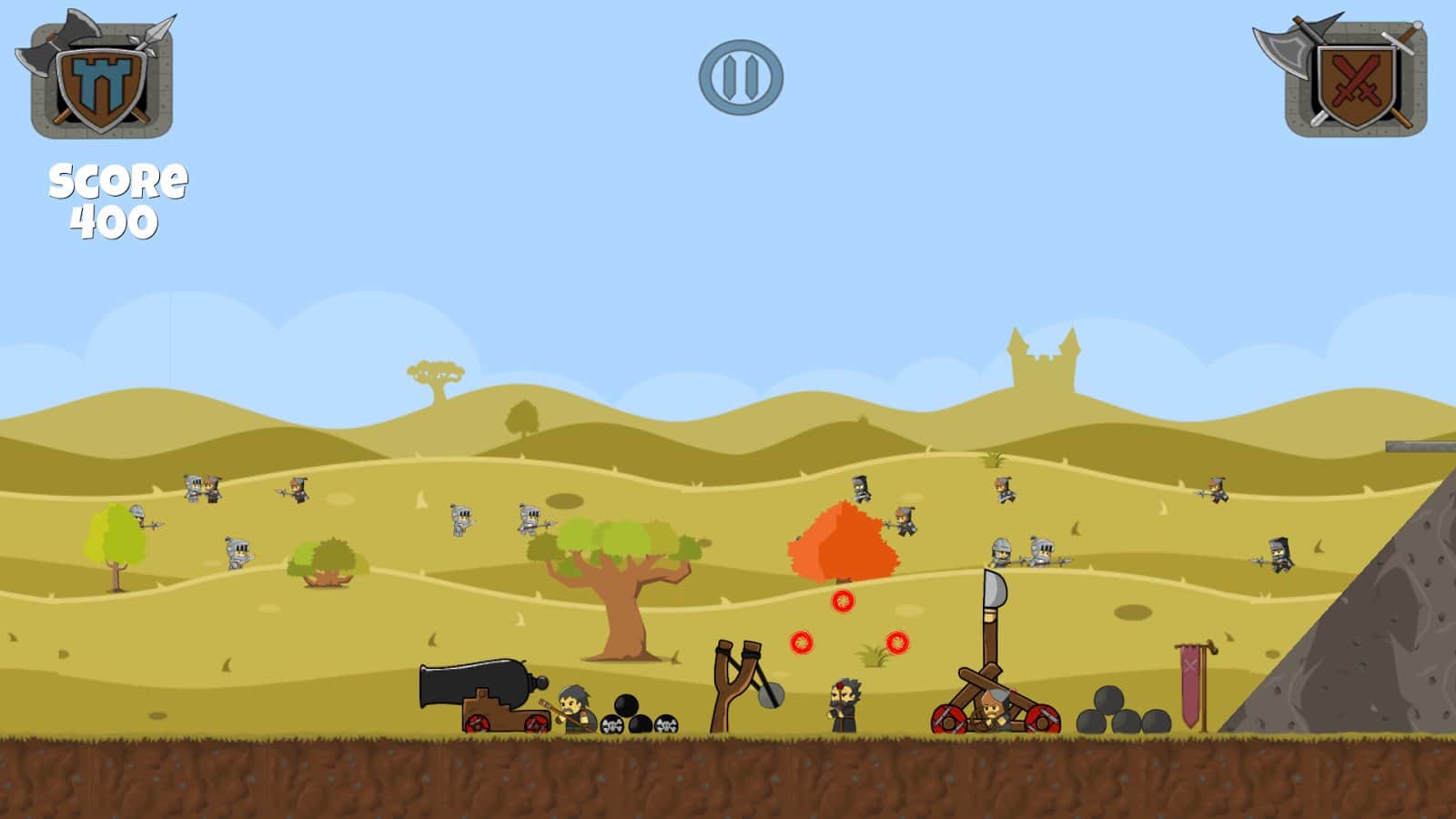Lucha en el Castillo – juego arcade entretenido para Android donde tomas control de tu ejército para asediar el castillo. Tus enemigos se refugiaron detrás de las paredes de un enorme castillo y tu tarea será asediar el castillo para lograr la victoria completa sobre el enemigo. Toma tus armas, utiliza cañones y magia y logra la rendición total del enemigo. Sé extremadamente cauteloso y vigilante y no dejes que el enemigo te engañe, porque ellos también aprovecharán el momento para contraatacar. Golpe maestro con catapultas en los lugares más vulnerables del castillo y con el mínimo número de disparos derrota al enemigo. Perfecciona tus habilidades estratégicas y desafía a tus amigos o a jugadores aleatorios en modo PVP.
